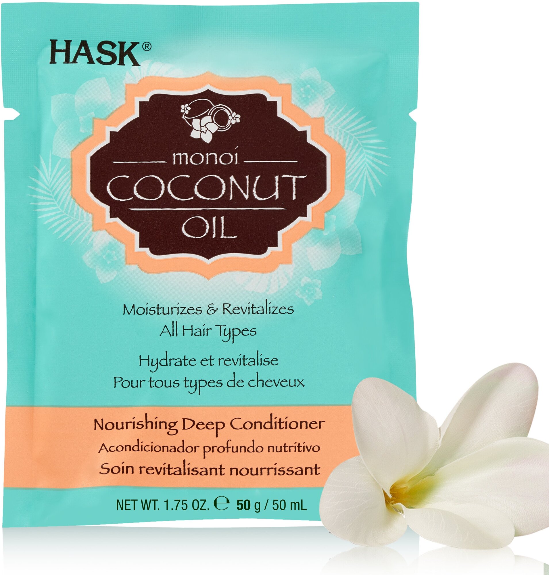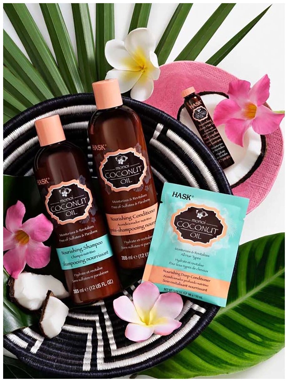 Кондиционер Hask Nourishing Deep Conditioner 33308F для питания волос с кокосовым маслом обогащена экстрактом лепестков гардений Таити и кокосовым маслом, способствует увлажнению и укреплению волос.