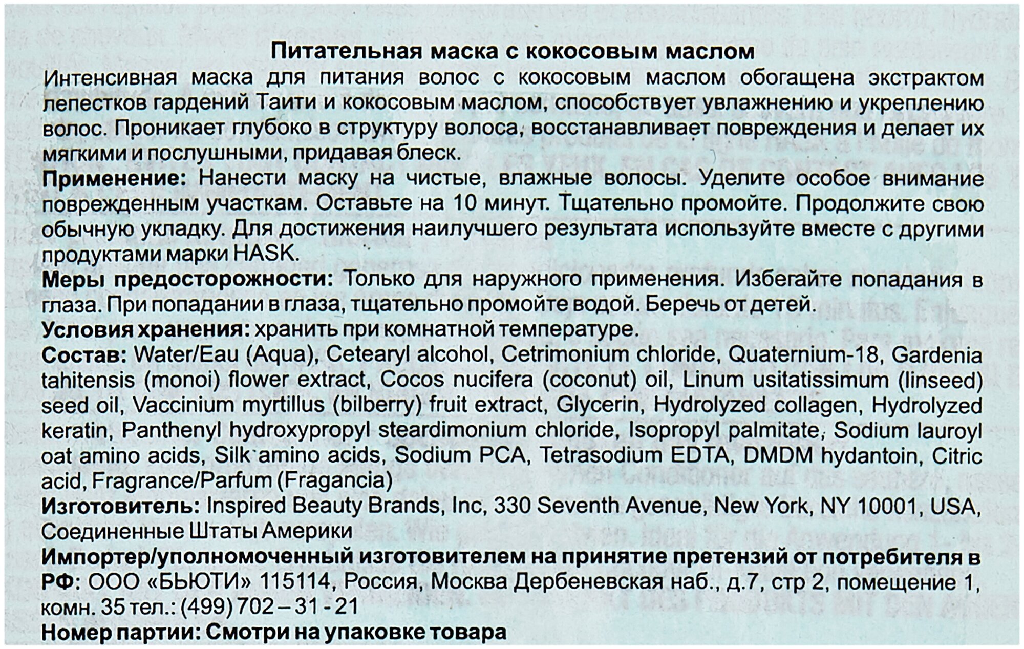 Маски, масла, сыворотки HASK »