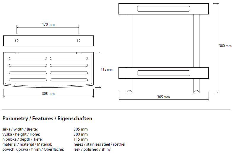Мыльница пряммоугольная двойная (нержавейка, хром). высота: 381 mm, ширина: 306 mm, глубина: 116 mm, Масса: 1.55 kg