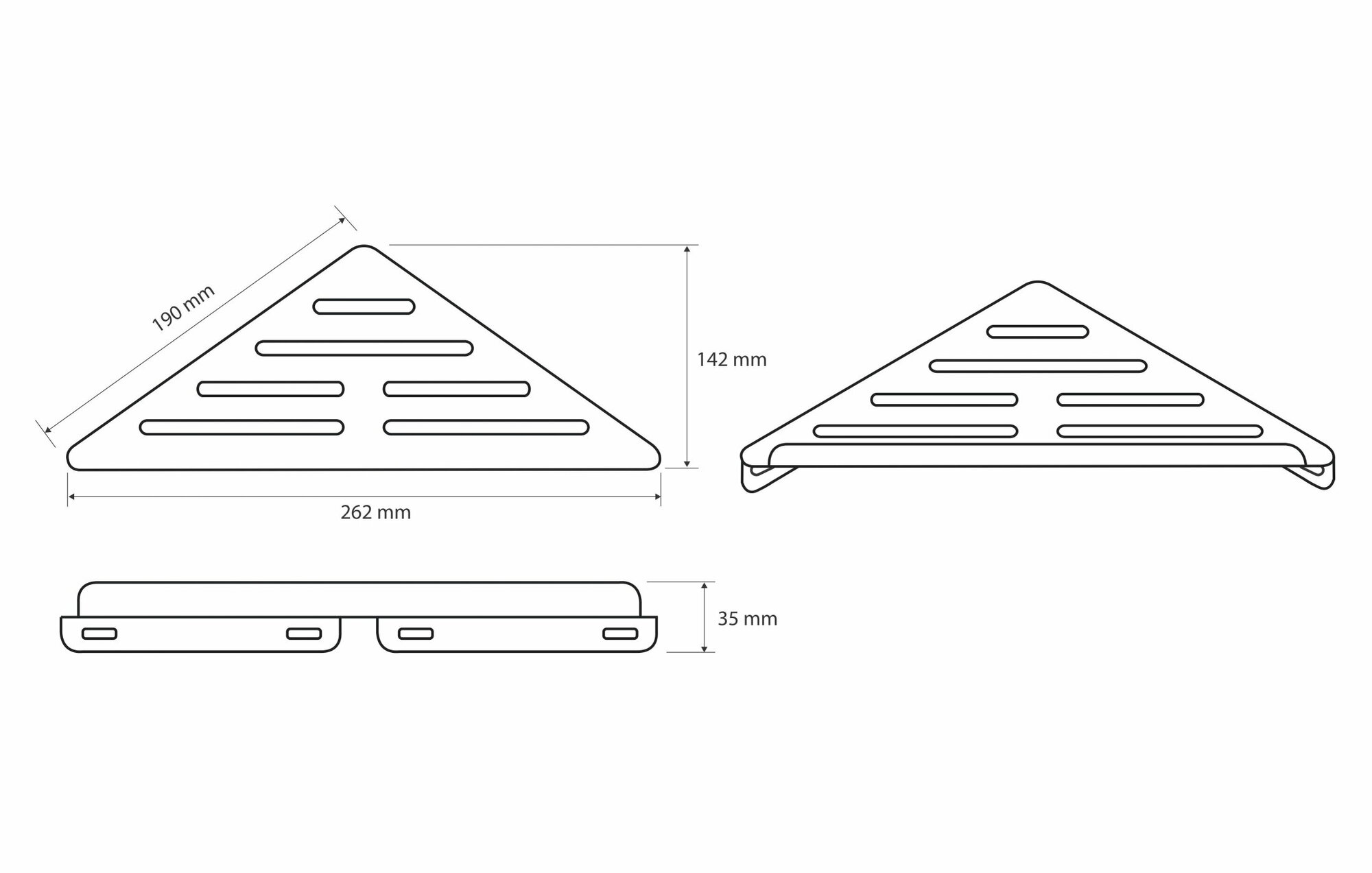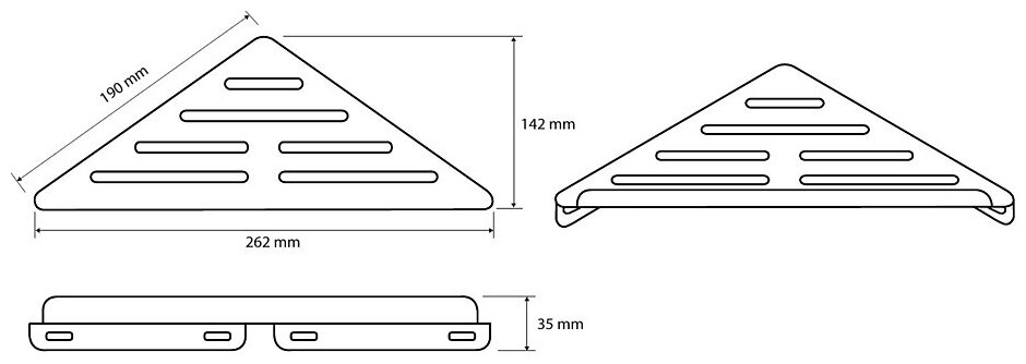 мыльница, нержавейка. высота: 36 mm, ширина: 263 mm, глубина: 143 mm,