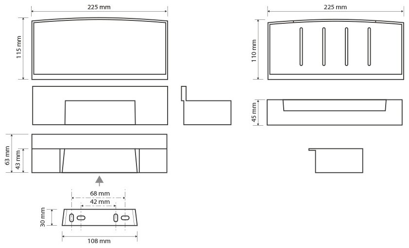 - Размер (ШхВхД): 22,5 х 6,3 х 11,5 см.