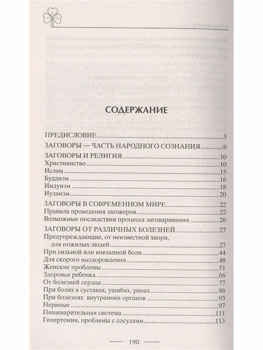 Когда дело касается здоровья, человек хватается за любую возможность его сохранить или поправить. В ход идёт все: традиционная и нетрадиционная медицина, церковные молитвы и, конечно же, обряды и заговоры… Заговор - это заклинание, магические слова, обладающие, по поверью, волшебной или целебной силой. В этой книге собраны заговоры и обряды, которые помогут вам при различных недугах, уменьшат страдания рожениц, оградят от беды во время эпидемий, поддержат стариков, сохранят детей, облегчат боль, защитят от негативного воздействия. Даны правила проведения заговоров и способы снятия их в домашних условиях.