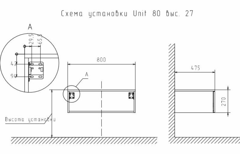 - Размеры (ШхВхГ): 80 х 27 х 47,5 см.