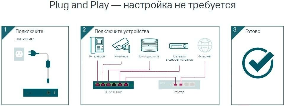 | Дополнительно | 4 порта PoE+, Plug and Play, дальность PoE для видеонаблюдения - до 250 м; возможность назначения высокого приоритета портам 1-2 |