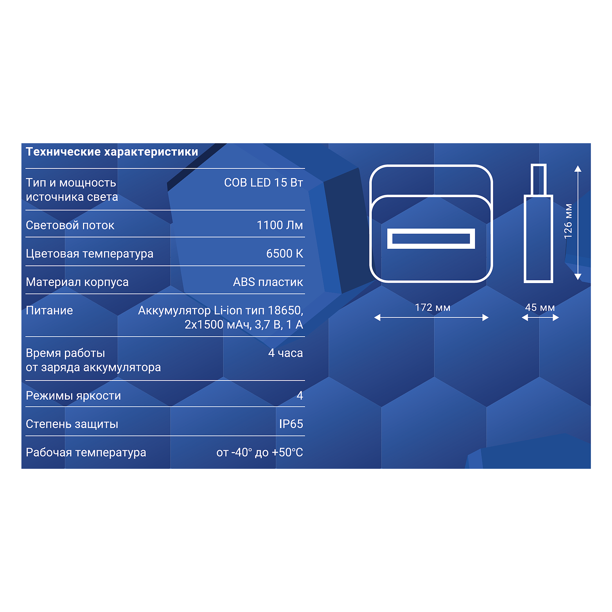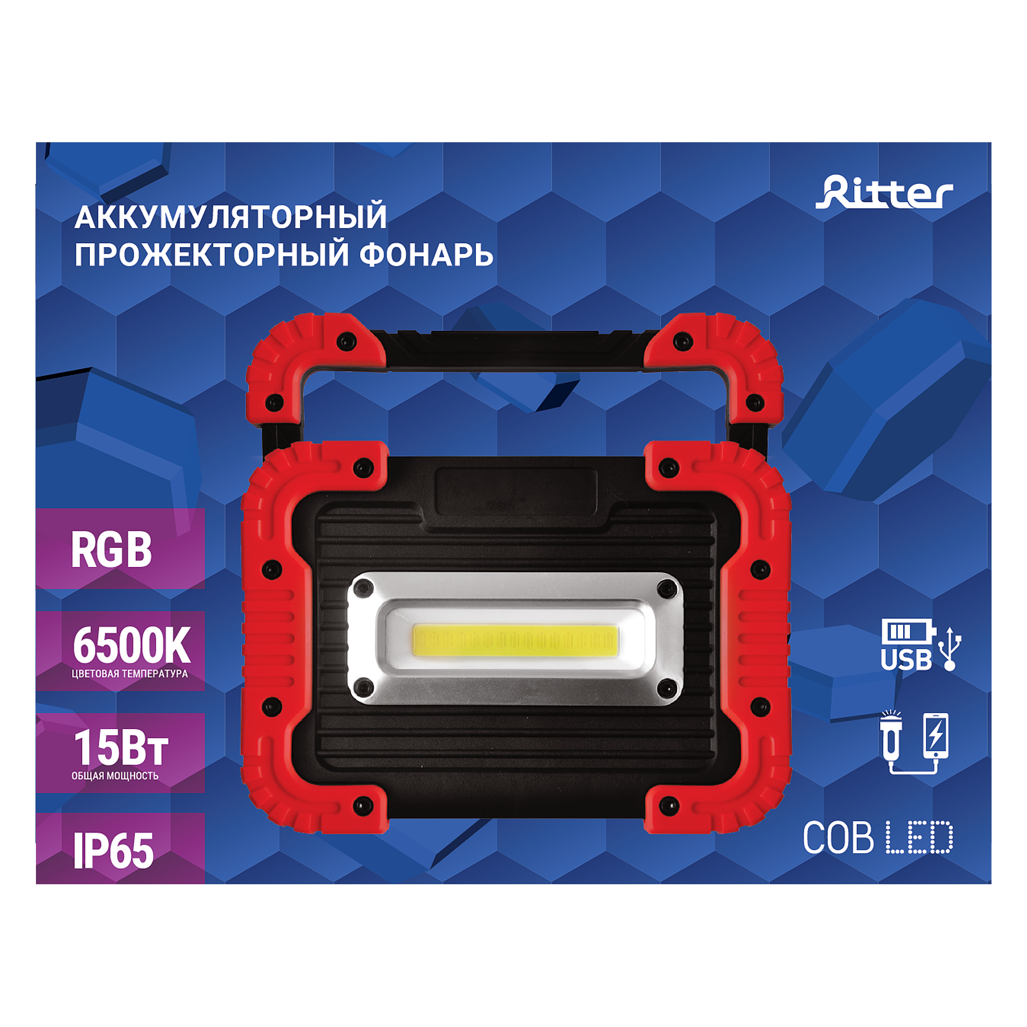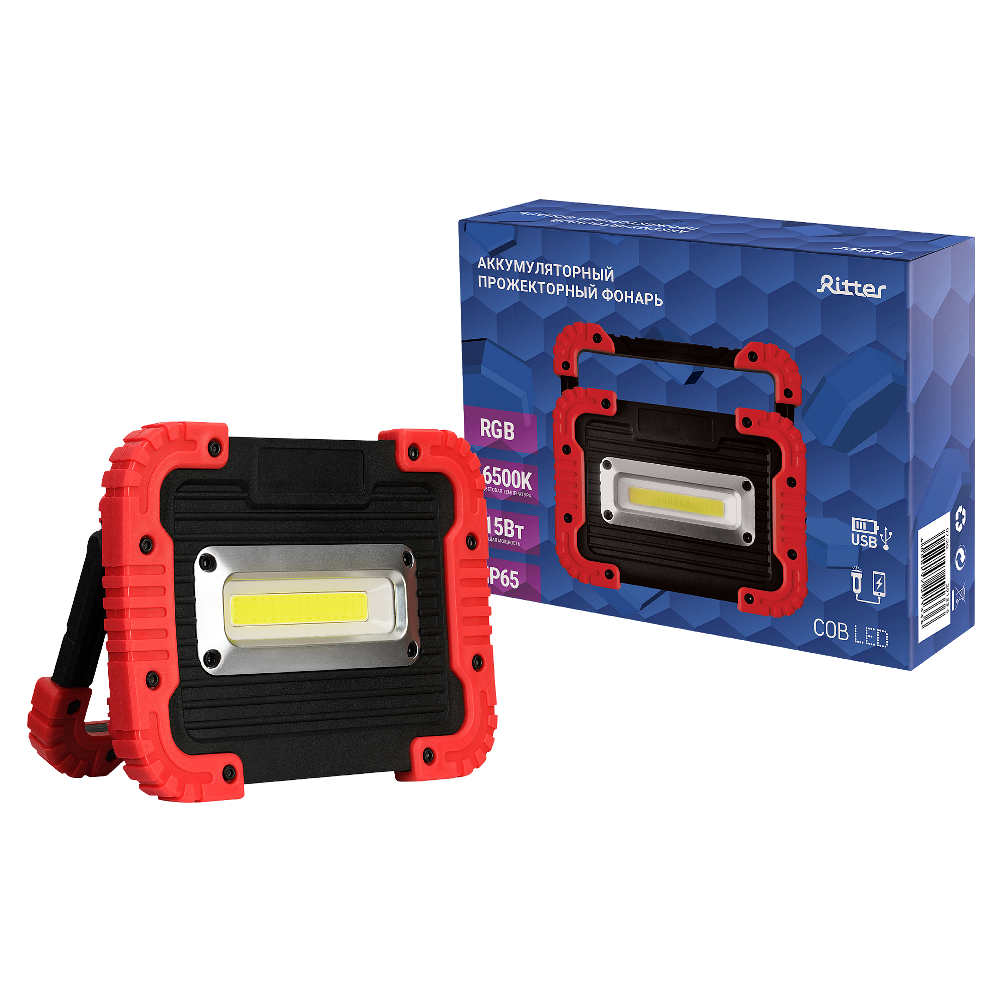 Аккумуляторный сд прожекторный фонарь 15W COB 3000мАч 1100Лм RGB-режим IP65 Без бренда