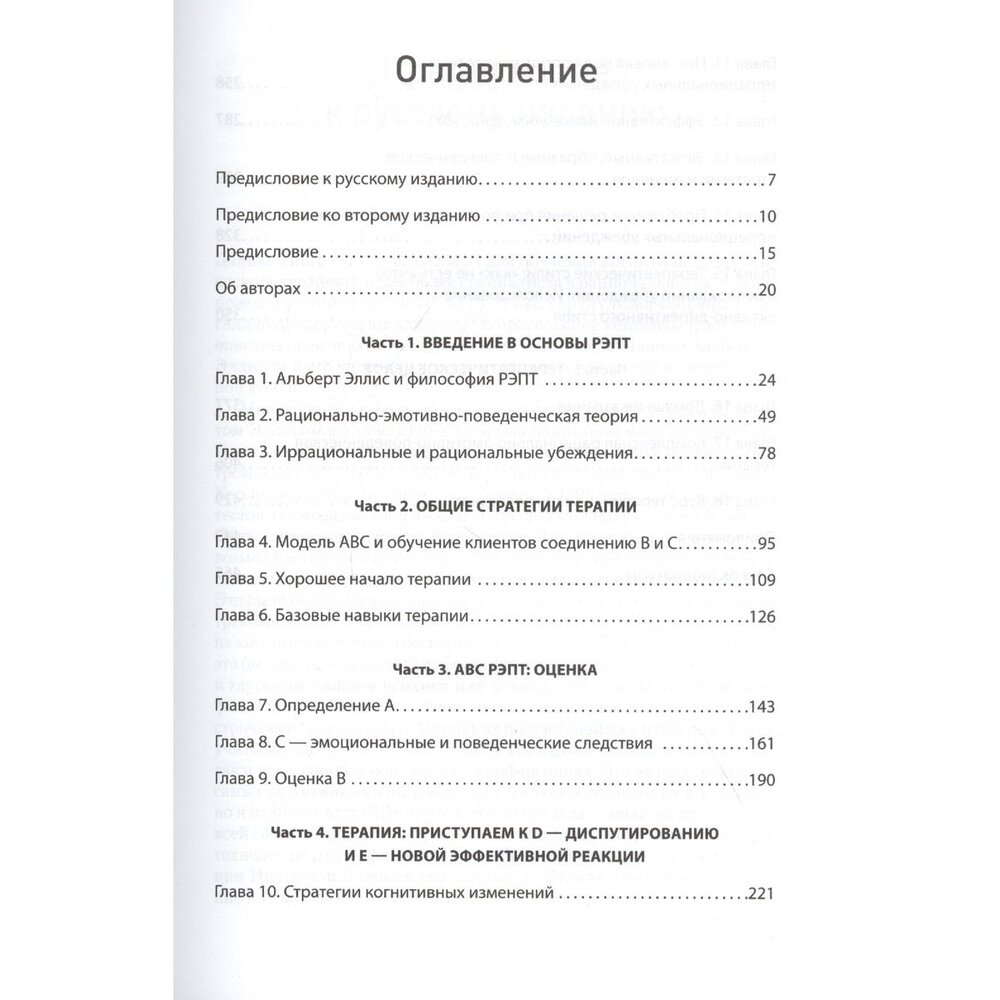 На сегодняшний день рационально-эмотивно-поведенческая психотерапия считается одним из наиболее эффективных методов психотерапии. Большая часть клинической мудрости и рекомендаций настоящего издания - это наследие выдающихся терапевтов, талантливых учеников Альберта Эллиса, многие годы работавших вместе с ним в основанном им институте, а в настоящее время являющиеся его руководителями и ведущими преподавателями, мировыми экспертами в области РЭПТ. Данная книга одна из базовых для обучения когнитивно-поведенческого терапевта и тем более специалиста в рационально-эмотивно-поведенческой терапии (РЭПТ). Начинающие специалисты и более опытные коллеги смогут найти для себя много полезных и важных техник и методик, теоретического и практического материала, бережно передающего суть элегантного подхода Эллиса, акцент на гуманистической и экзистенциальной составляющей его терапии, которая делает когнитивных подход более наполненным эмоциями, ценностями и смыслами. Так же в этой книге вы откроете для себя современное прочтение РЭПТ, активно развиваемое в первую очередь именно авторами этого руководства.