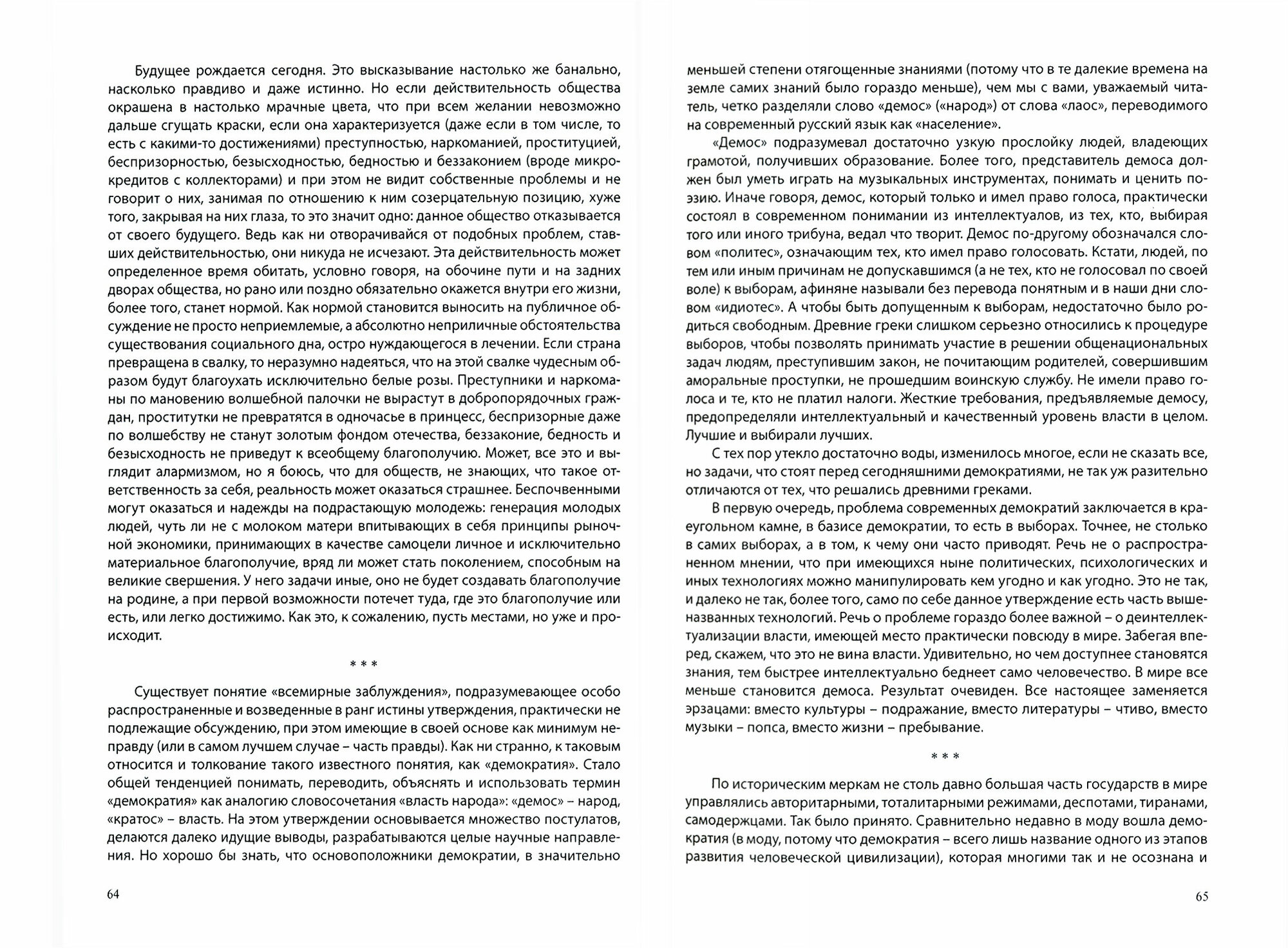Без непосредственного участия общества в собственной судьбе решить вопрос совершенствования человеческого бытия не удастся. И чтобы не оказаться в кильватере событий и не стать беспомощным наблюдателем за объективными процессами, нужны изменения как в самих государстве и обществе, так и в их взаимоотношениях.