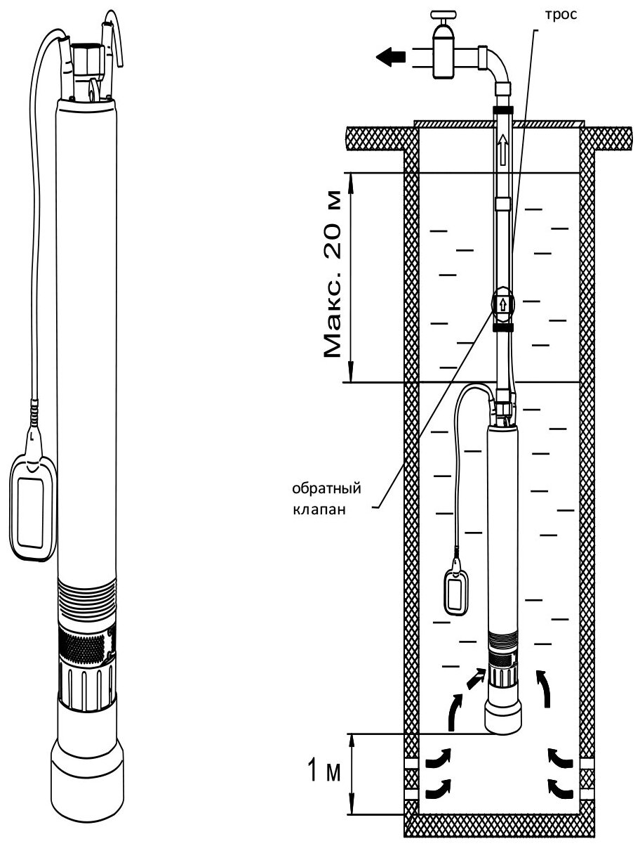 | Наличие поплавкового выключателя | С поплавковым выключателем |