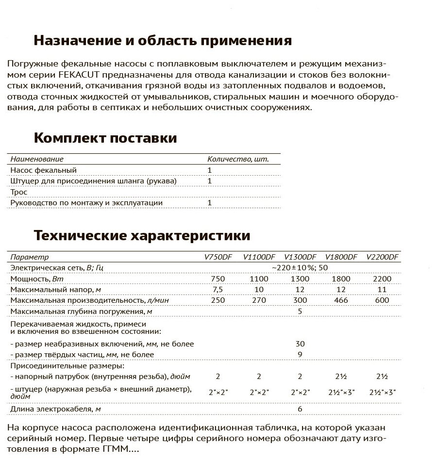 Насос погружной Unipump FEKACUT V1300DF мощностью 1300 Вт предназначен для работы с фекальными и сточными водами. Это незаменимое приобретение для оттока воды из подвалов, канализаций и других мест, где необходим отток грязных жидкостей. Устройство за час способно переработать до 18000 литров жидкости и может быть за час включено до 30 раз. При этом в перекачиваемой жидкости не должны содержаться волокнистые частицы. Насос работает с жидкостями в температурном диапазоне от +1 до +40 градусов.
