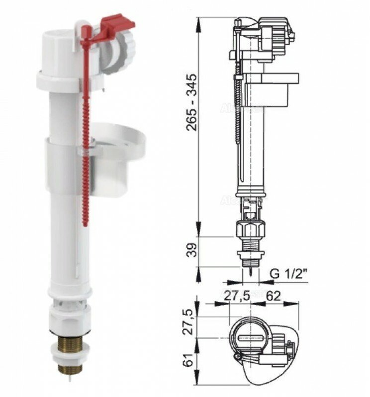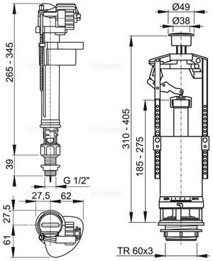 Наливная арматура для бачка Alcadrain Alca plast A18 1/2 (размер: 39 мм)