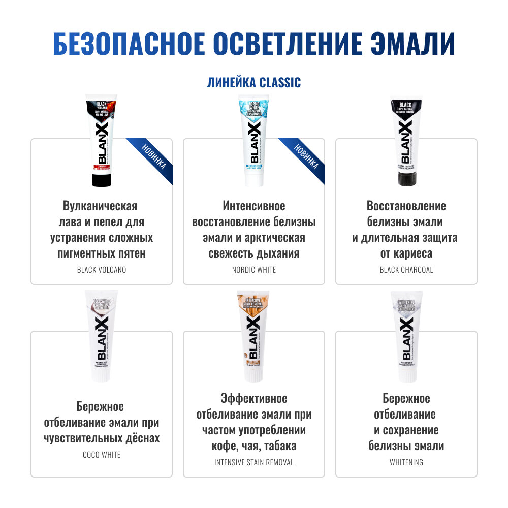 | Линия бренда | BlanX Classic - Осветляющая зубная паста постепенный эффект |
