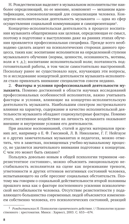 Эстрадное самочувствие исполнителя является сегодня одной из важнейших профессиональных проблем, в исследовании которой заинтересованы и теоретики, и практики музыкального исполнительства. Источником многих противоречий музыкальной практики, благоприятное решение которых необходимо и для юного музыканта, и для его педагога, являются процессы «музыкального» детства (становление характера, биоритмов, интеллектуальных качеств и т. д.). А значит, оптимальное сценическое самочувствие исполнителя обусловлено не только музыкальными способностями, счастливым стечением обстоятельств творческой деятельности, но в первую очередь резервами адаптации к выполнению жизненных задач. Соответствует актуальным требованиям Федерального государственного образовательного стандарта высшего образования. Курс адресован специалистам, имеющим отношение к воспитанию музыканта на всех уровнях обучения.