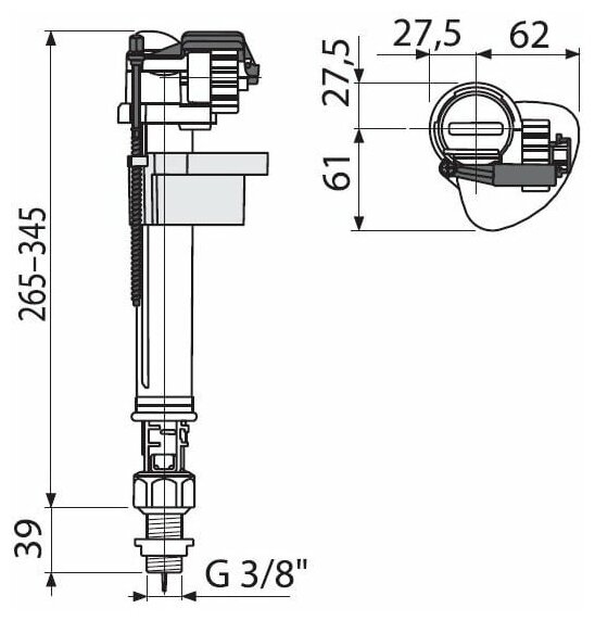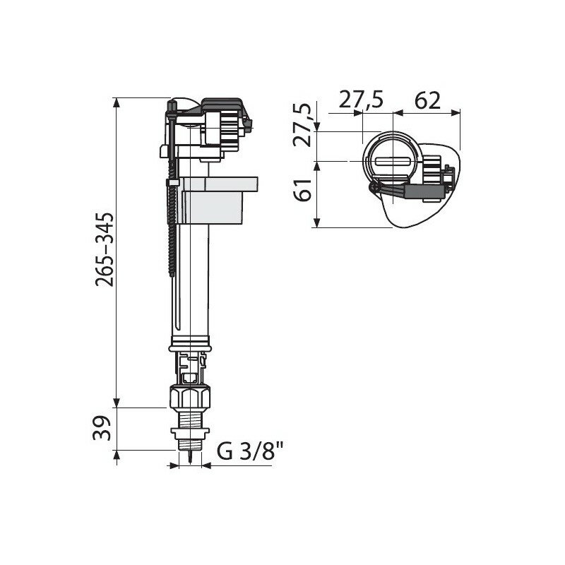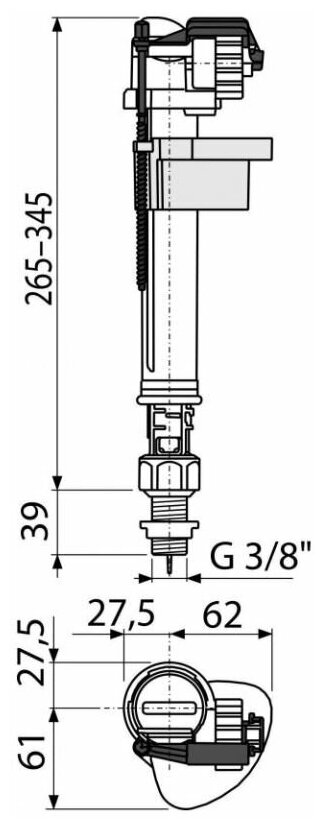 Клапан для бачка Alca Plast 3/8" A17-3/8 имеет пластиковую резьбу длиной 39 мм, встроенный фильтр для улавливания грубых нечистот, плавное закрытие механизма, возможность регулировать уровень воды, низкую чувствительность к перепадам давления в водопроводе. Конструкция позволяет регулировать высоту впускного механизма в зависимости от высоты бачка. Изделие выполнено из АБС пластика.