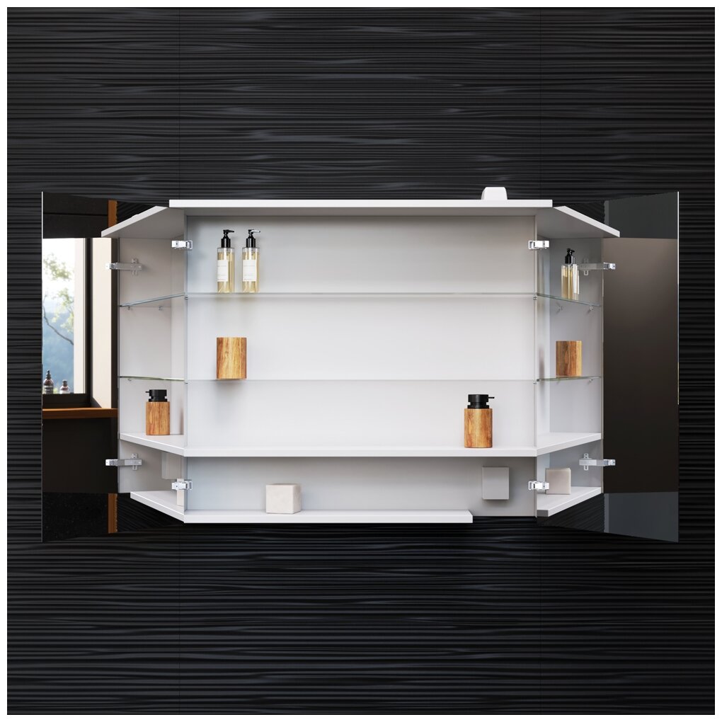 | ВКоробке | Зеркало-шкаф - 1 шт. Вкладная полка - 2 шт. Комплект подсветки - 1 шт. Комплект доводчиков - 1 шт. Инструкция - 1 шт. |