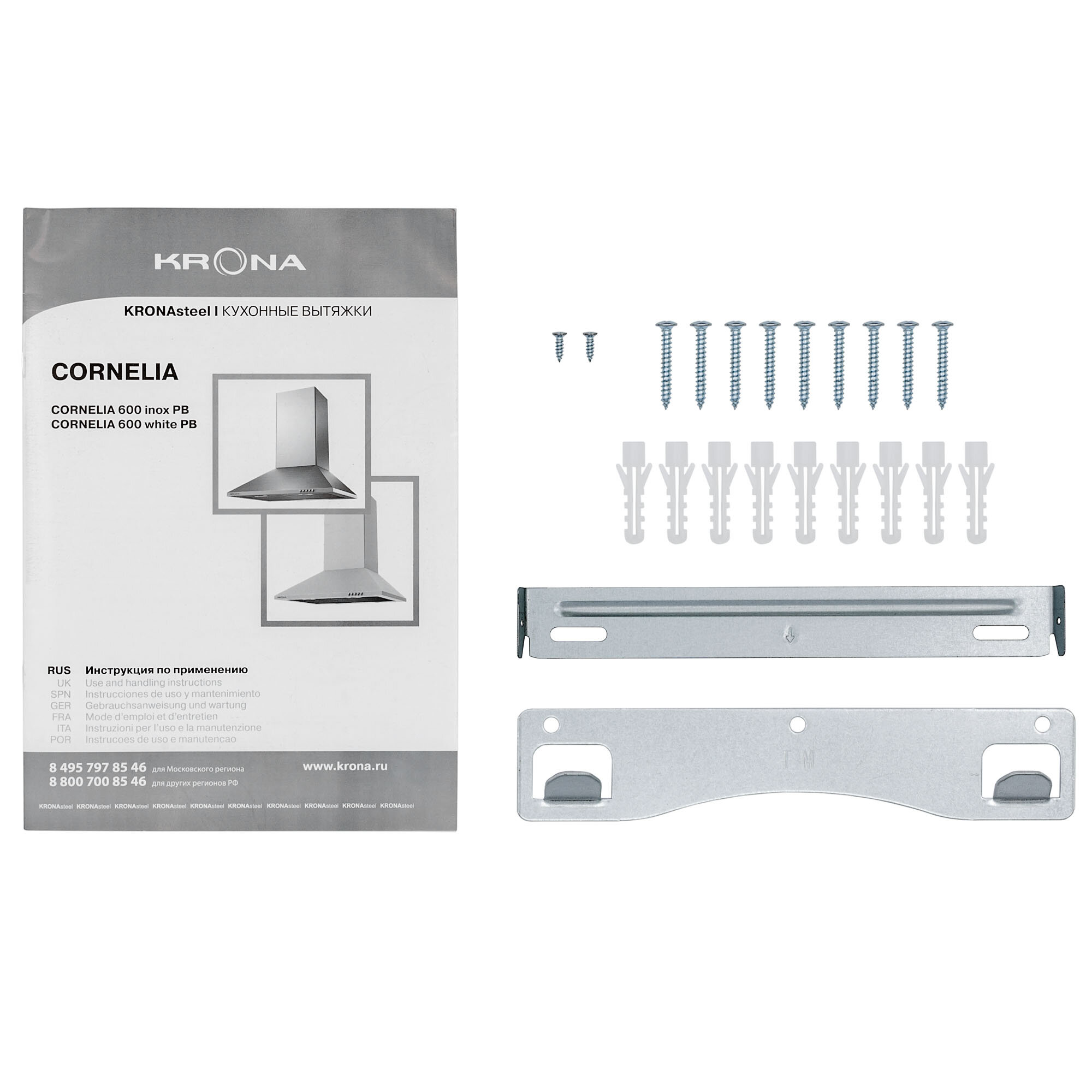 Каминная вытяжка Krona Cornelia 600 белый, количество двигателей 1, режим работы отвод/циркуляция, кнопочное управление, жироулавливающий фильтр ()