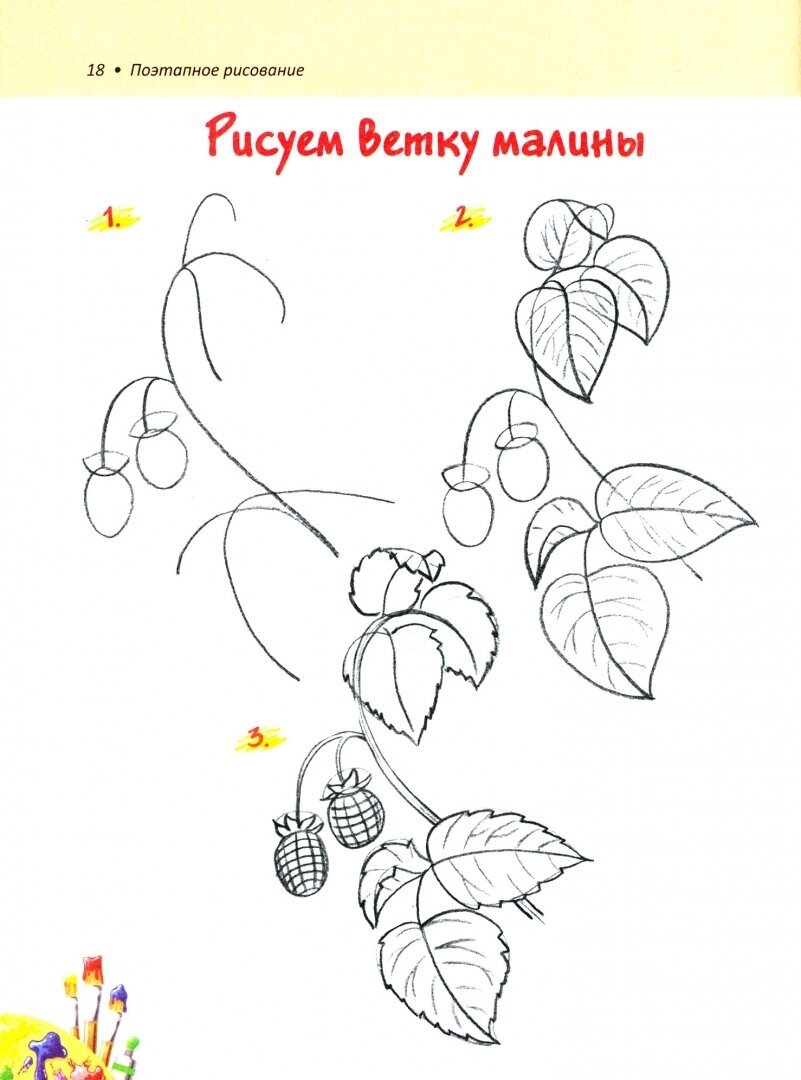 Рисунки включают простые и более сложные эскизы. Поражает разнообразие персонажей: от известных мультфильмов до простых животных и птиц. Понравилось, что в книге представлены растения: цветы, деревья, ягоды. Кроме того, книга знакомит с перспективой: можно нарисовать предметы мебели. Раскрыты секреты рисования.