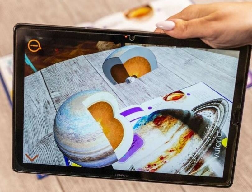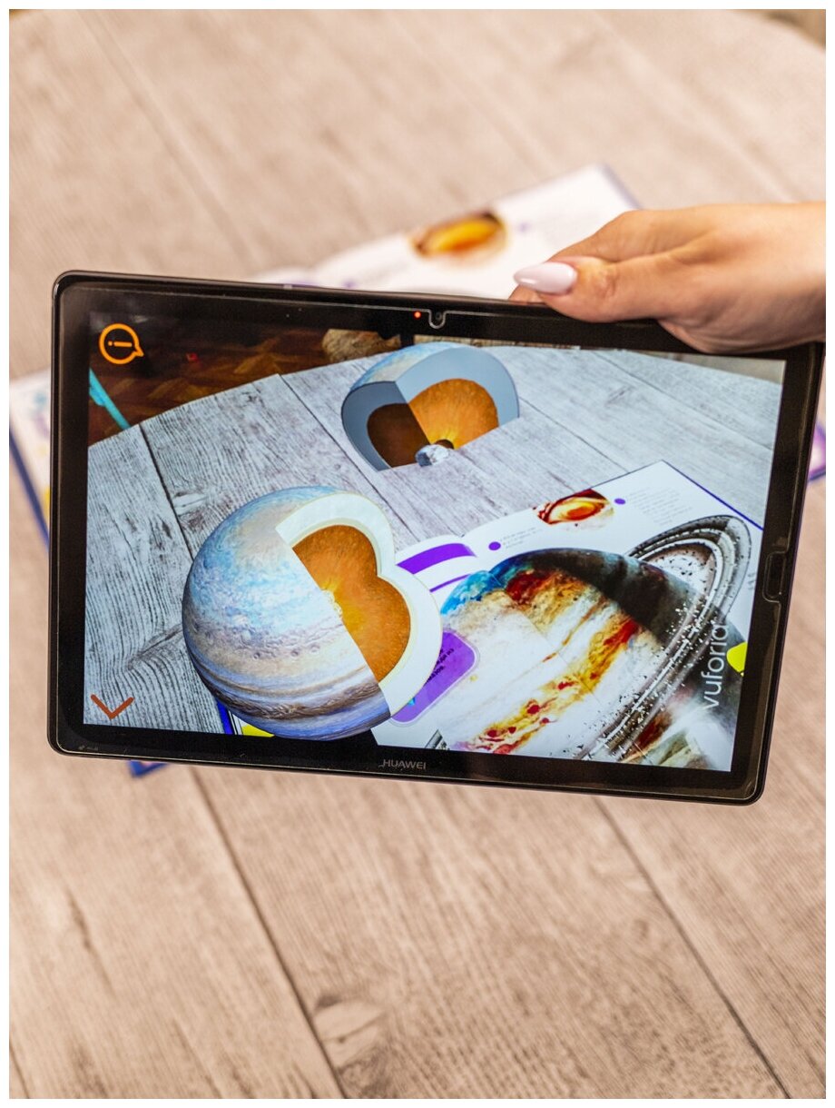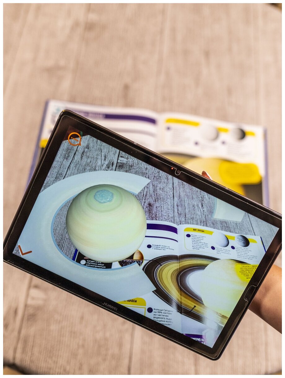 Эта книга с дополненной реальностью не первая в нашей библиотеке, но она стала любимой! Потрясающие картинки, их интересно рассматривать. Сколько нового описано в книге, некоторые факты мы с сыном узнали впервые! Тексты короткие и сын(7 лет) не устает, пока читаю ему. В дополненной реальности появляются очень красивые планеты, можно на некоторое время оставить ребенка с телефоном и он послушает название планет, из каких слоев они состоят и интересные факты. Информация в дополненной реальности не повторяет факты из книги - это тоже плюс. Играем с книгой уже неделю, рекомендую! Не пожалеете...