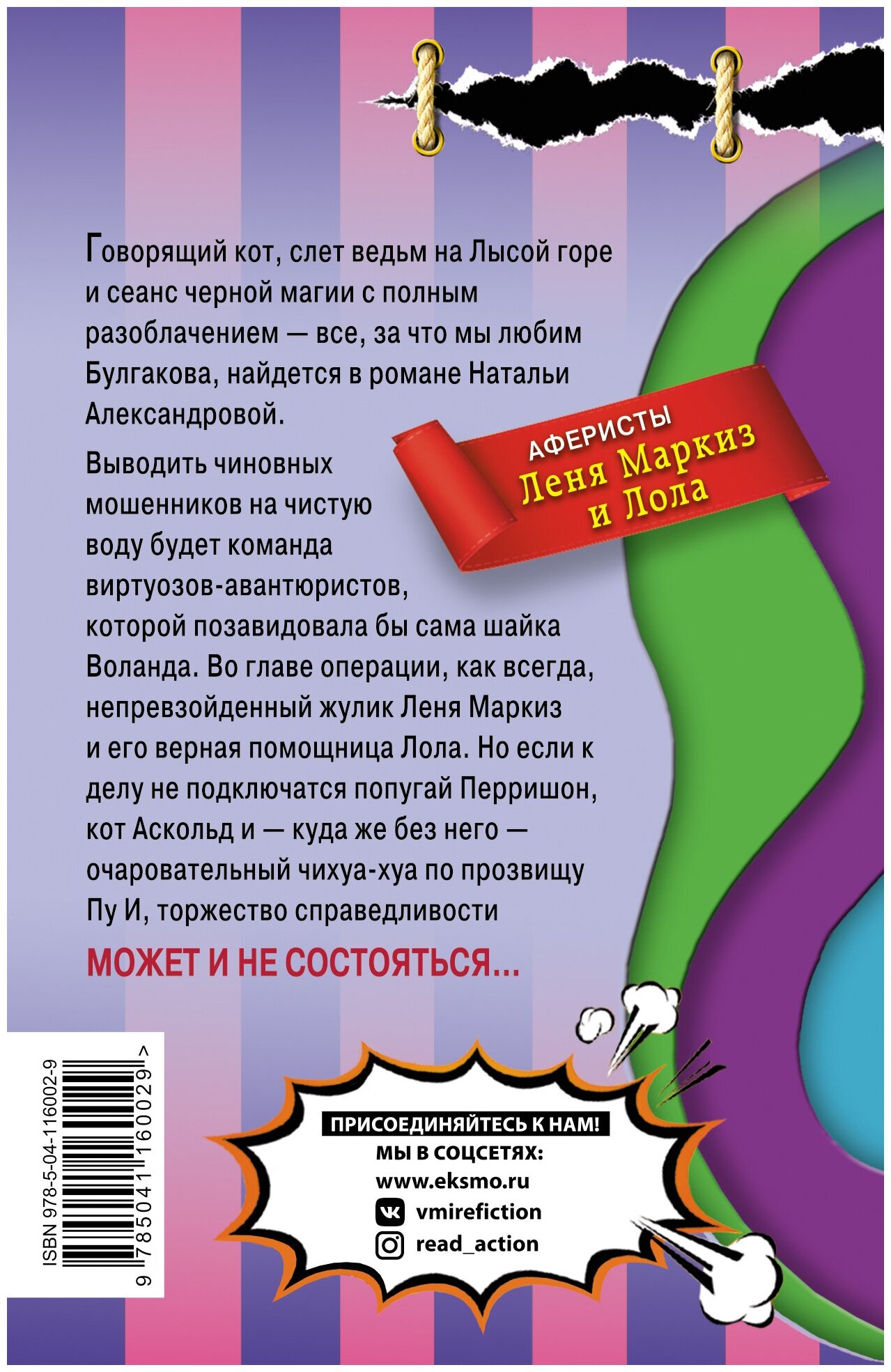 Говорящий кот, слет ведьм на Лысой горе и сеанс черной магии с полным разоблачением - все, за что мы любим Булгакова, найдется в романе Натальи Александровой. Выводить чиновных мошенников на чистую воду будет команда виртуозов-авантюристов, которой позавидовала бы сама шайка Воланда. Во главе операции, как всегда, непревзойденный жулик Леня Маркиз и его верная помощница Лола. Но если к делу не подключатся попугай Перришон, кот Аскольд и - куда же без него - очаровательный чихуа-хуа по прозвищу Пу И, торжество справедливости может и не состояться… Непостижимое сочетание романтической мелодрамы и жесткой иронии в трагикомических детективах Натальи Александровой. И смех, и слезы, и любовь - все, как в реальной жизни!