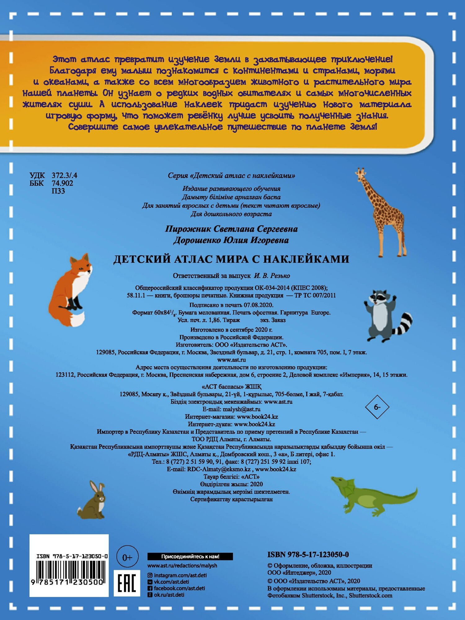 Детский атлас мира с наклейками (Пирожник Светлана Сергеевна; Дорошенко Юлия Игоревна); АСТ, Малыш, 2021