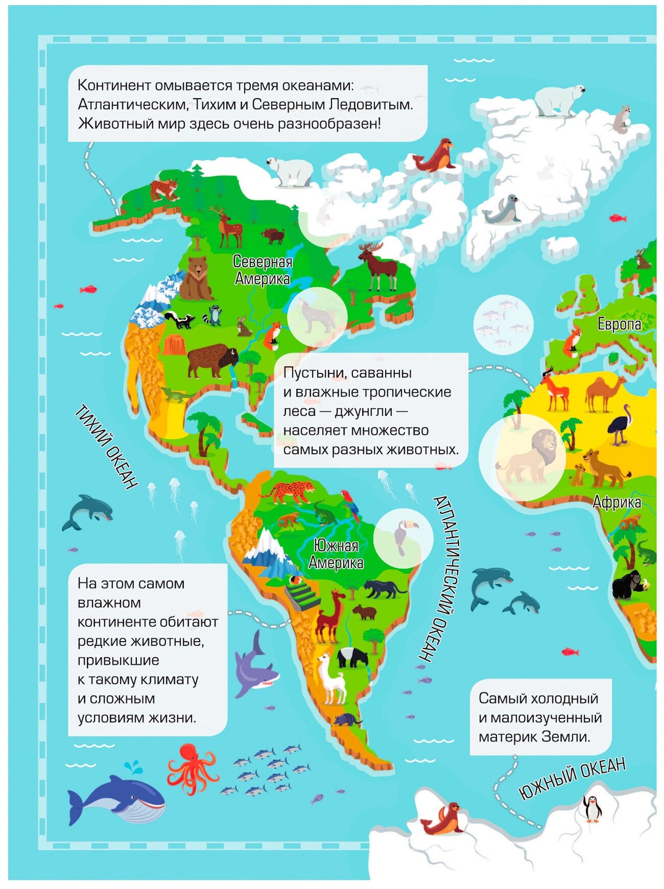 Этот атлас превратит изучение Земли в захватывающее приключение! Благодаря ему малыш познакомится с континентами и странами, морями и океанами, а также со всем многообразием животного и растительного мира нашей планеты. Он узнает о редких водных обитателях и самых многочисленных жителях суши. А использование наклеек придаст изучению нового материала игровую форму, что поможет ребёнку лучше усвоить полученные знания.