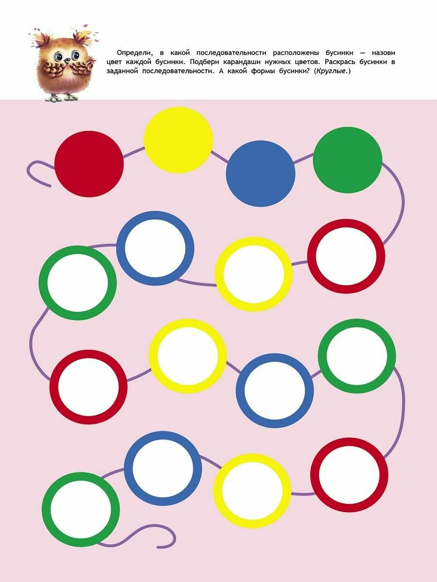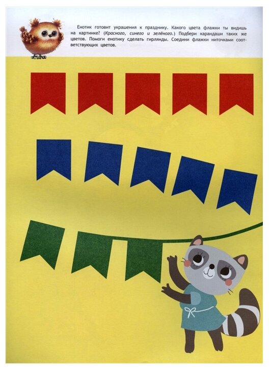 В пособии, которое вы держите в руках, собраны задания, направленные на развитие мышления малышей третьего года жизни. В этом возрасте дети стремятся познавать окружающий мир с помощью действий (наглядно-действенная форма мышления). Наряду с этим очень важно развивать и наглядно-образную форму мышления: расширять знания малышей о предметах, которые их окружают, учить устанавливать простейшие связи между ними, формировать самое первое представление о количестве предметов, об их величине, цвете и форме. Малыши третьего года жизни способны выполнять несложные упражнения на установление сходства и различия между предметами по одному из признаков (цвет, форма, величина). Они должны уметь отличать основные цвета (красный, жёлтый, синий, зелёный), геометрические формы (круг, треугольник, квадрат, прямоугольник), оперировать понятиями "большой" и "маленький", "много" и "мало".
