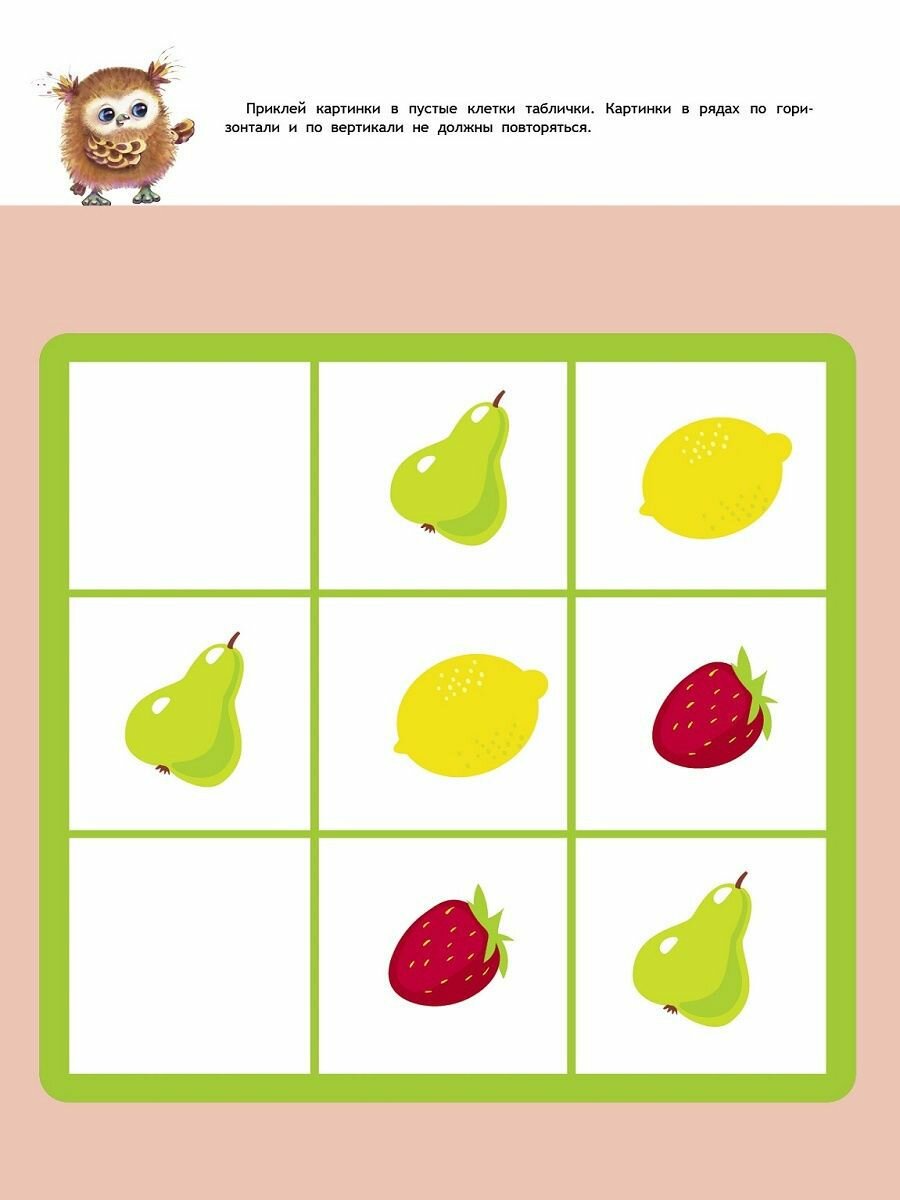 Эти возрастные особенности были учтены при составлении пособия. Задания расположены в порядке возрастания сложности, рекомендуем выполнять их именно в такой последовательности. Лист с многоразовыми наклейками, необходимыми для выполнения заданий, вы найдёте в середине книги.