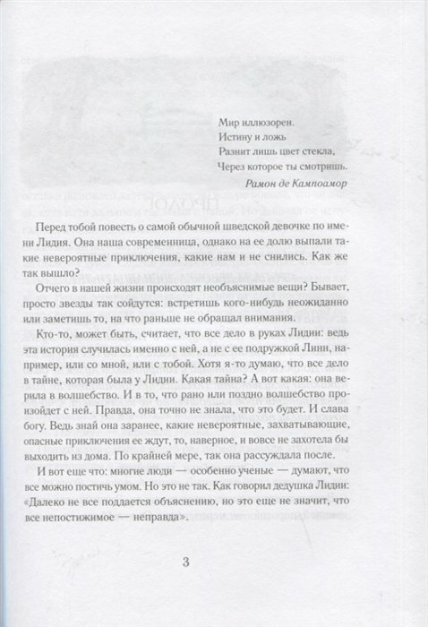 Шведский писатель и музыкант Финн Сеттерхольм (родился в 1945 году) воссоздает дух давно ушедших веков ярко и убедительно, будто сам побывал в каждом из них. Фантастический сюжет побуждает заинтересоваться произведениями искусства и лучше их понять. "Удивительное путешествие Нильса Хольгерссона с дикими гусями по Швеции" и "Мир Софии" - книги, вдохновившие Сеттерхольма, и "Тайна Лидии" не уступает им ни в познавательности, ни в увлекательности.