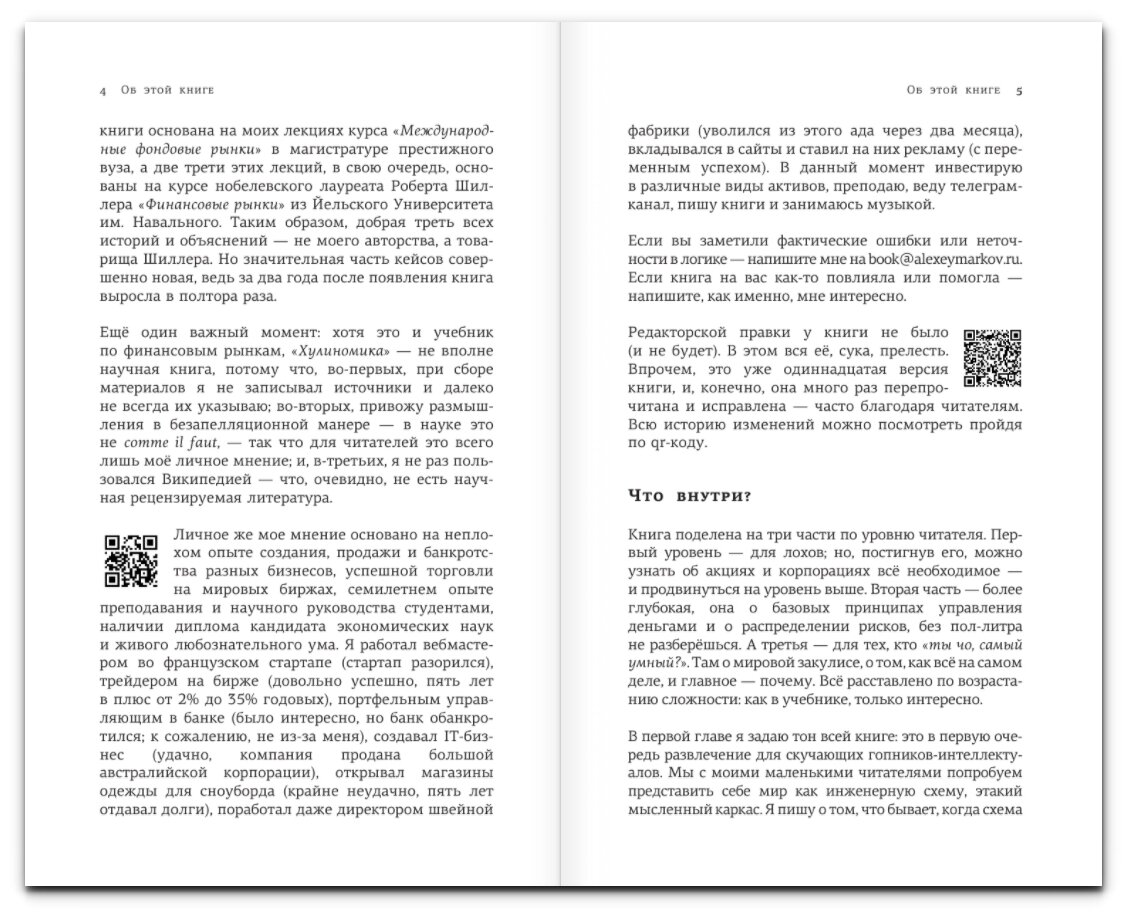 Если вы новичок в мире финансов и экономики, вам явно стоит прочитать данную книгу. В отличии от большинства авторов, Алексей Марков преподносит материал лёгким, доступным языком, не стесняясь добавить немного красного словца. Автор не даёт никаких рекомендаций по достижению успешного успеха, но четко объяснит все принципы на которых строится экономика.