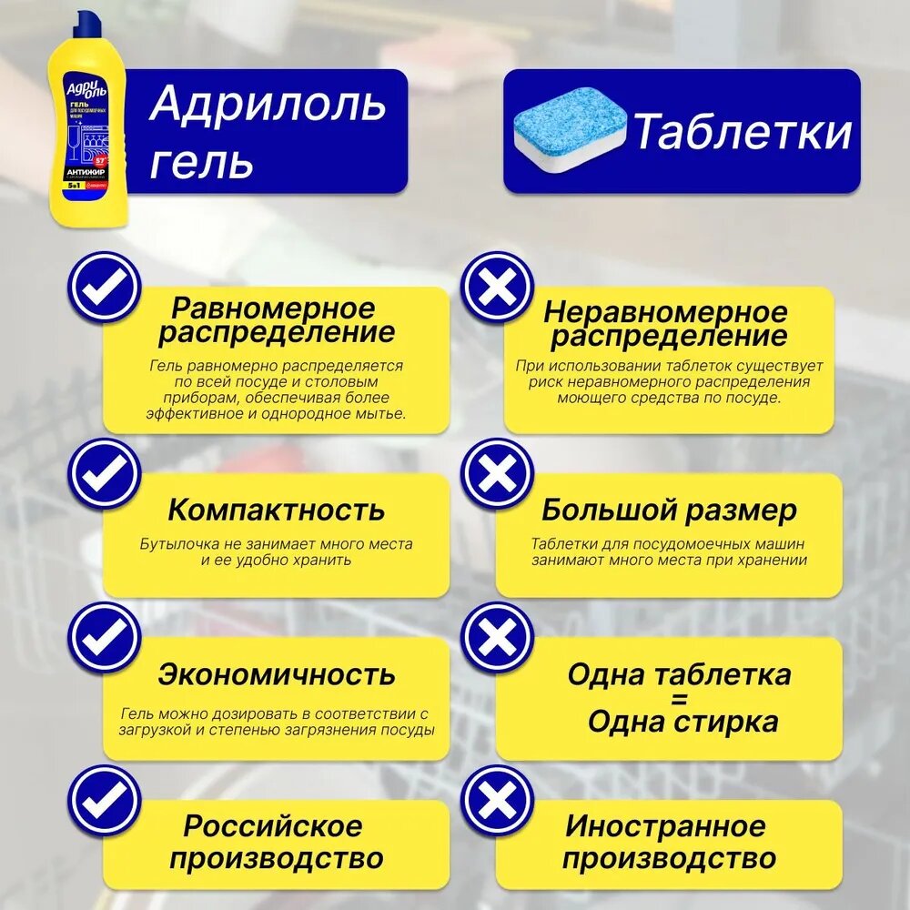Сервис сравнения цен СкидкаГИД предлагает сравнить цены на товар «Гель для посудомоечных машин Адриоль Блеск и сушка 5в1 850 мл 100250»