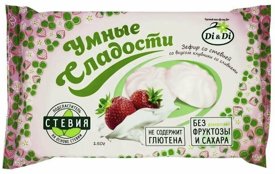 Зефир Умные сладости со стевией со вкусом клубники со сливками 150г