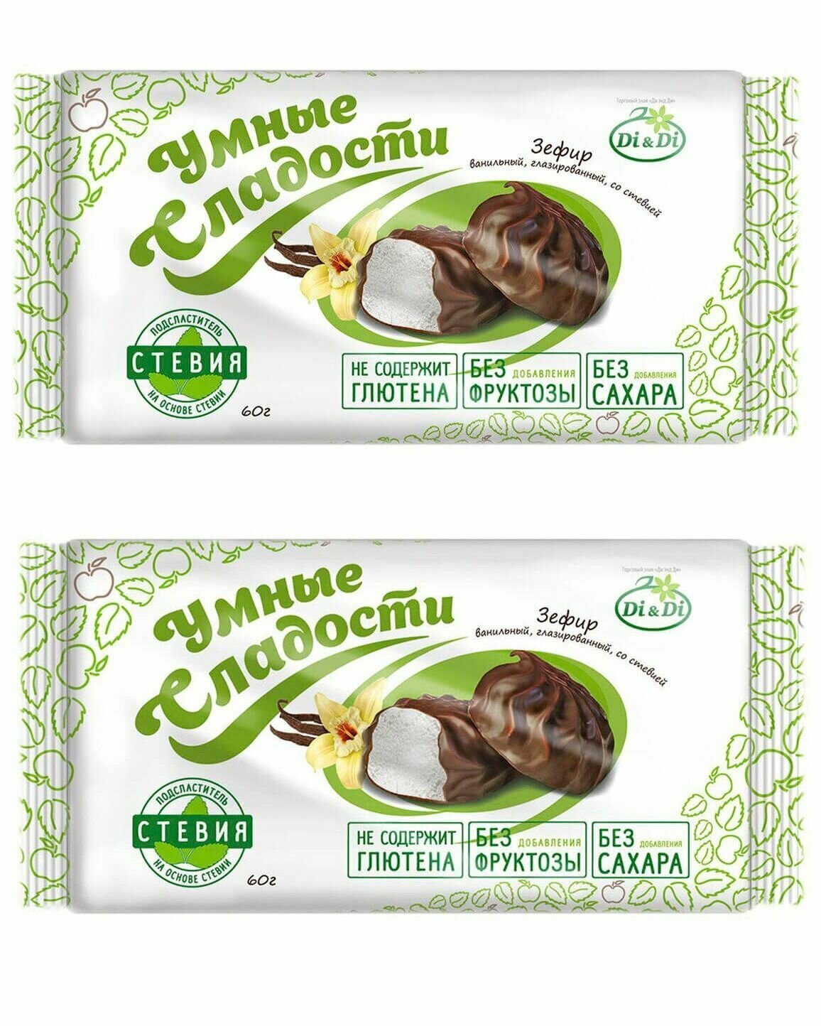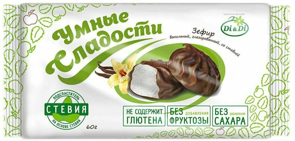 Зефир Умные сладости глазированный со стевией со вкусом ванили 60г