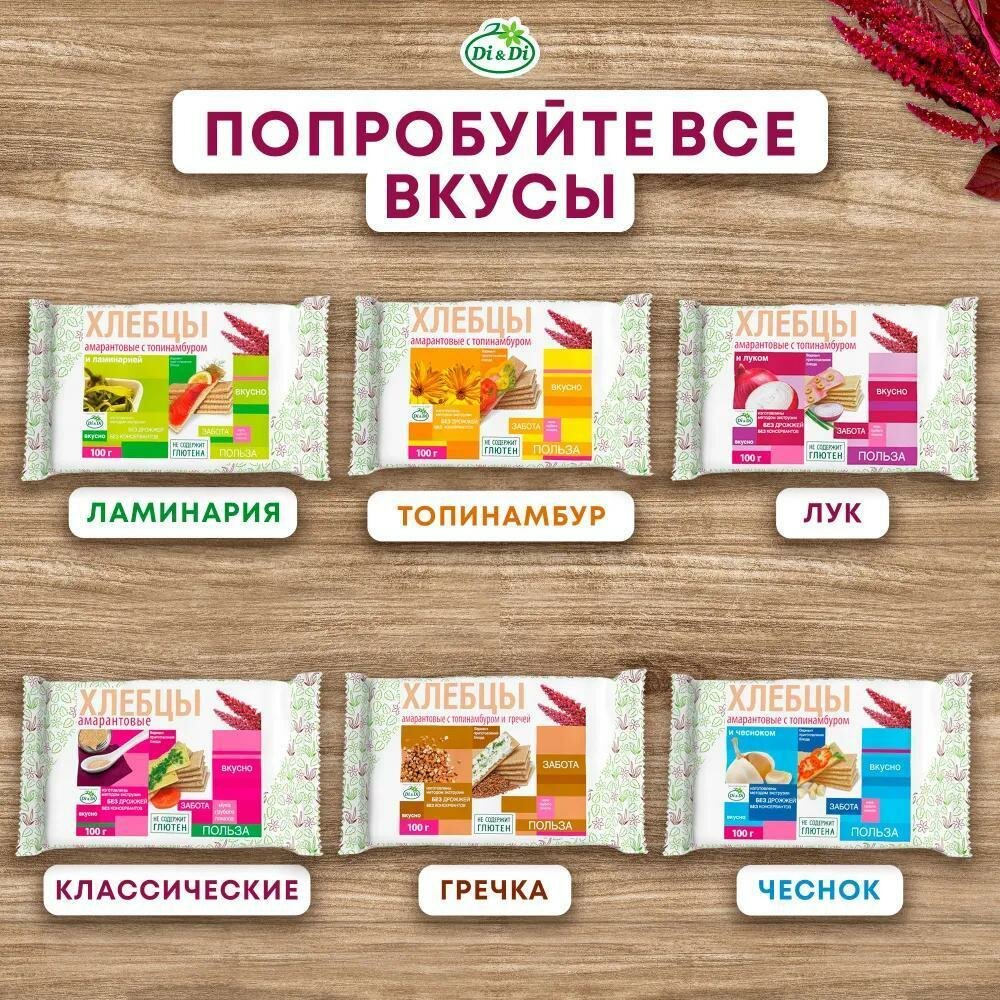Сервис сравнения цен СкидкаГИД предлагает сравнить цены на товар «Хлебцы Di&Di амарантовые с топинамбуром и ламинарией 100г»