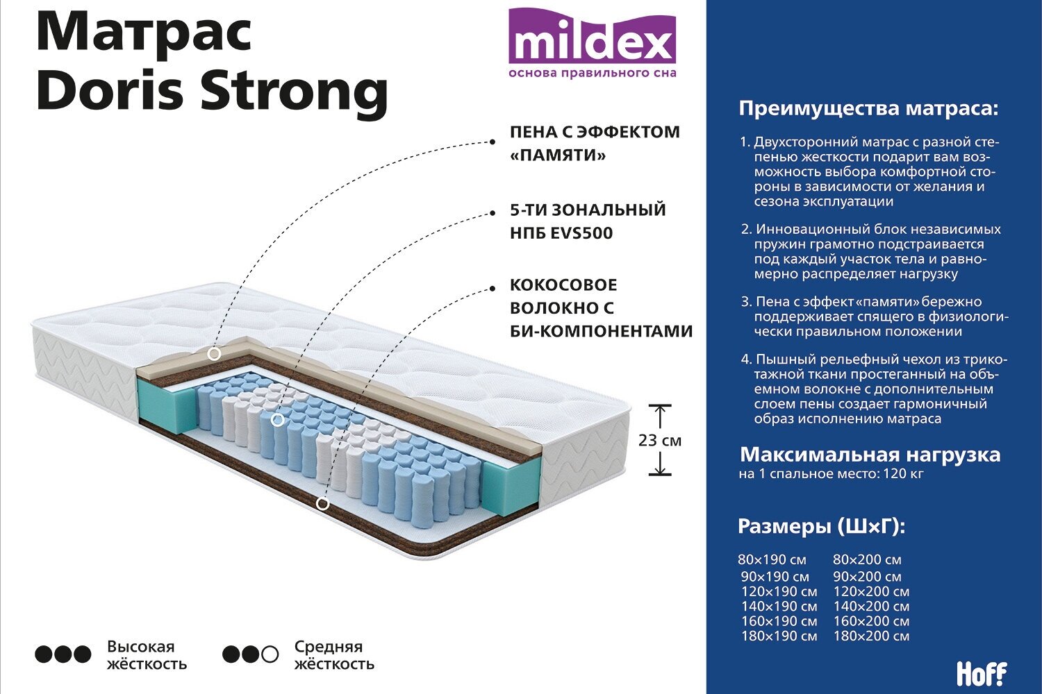 На сегодняшний день товар «Матрас пружинный MILDEX Doris Strong (размер: 100х200 см)» можно купить с кешбеком в 1 магазине: Hoff