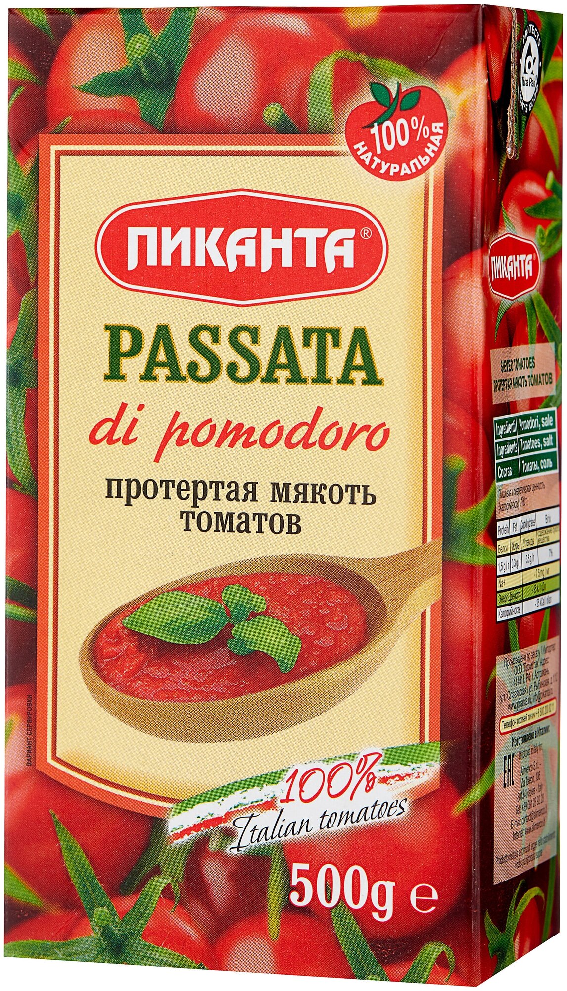 | Состав | Протертая мякоть томатов, соль |