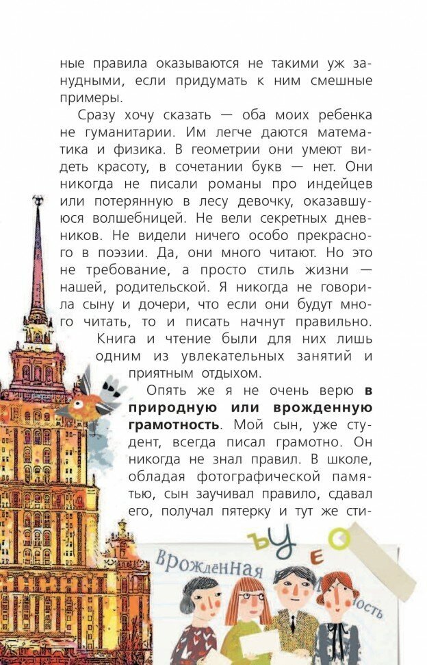 Что-что а уж нудной эту книжку точно не назовёшь. Трауб не пишет нудные книги. Можно было и название дать- "Весёлый русский язык". Прикольная книга, прочитав которую некоторые правила русского языка запомнятся легко, как по мановению волшебной палочки. Иногда нужны такие книги не только детям, но и взрослым. Надо ведь как-то помогать своим чадам.Тем более сейчас, в условиях дистанта, полнейшего отупления наших детей. Всё сошлось в этой книге. Очень понравились игры, в которые можно играть всем вместе. Только жаль, что в книге есть опечатки. Книга в переплёте, бумага белая, плотная, текст комфортный для чтения. Иллюстрации цветные, очень забавные. Рекомендую!