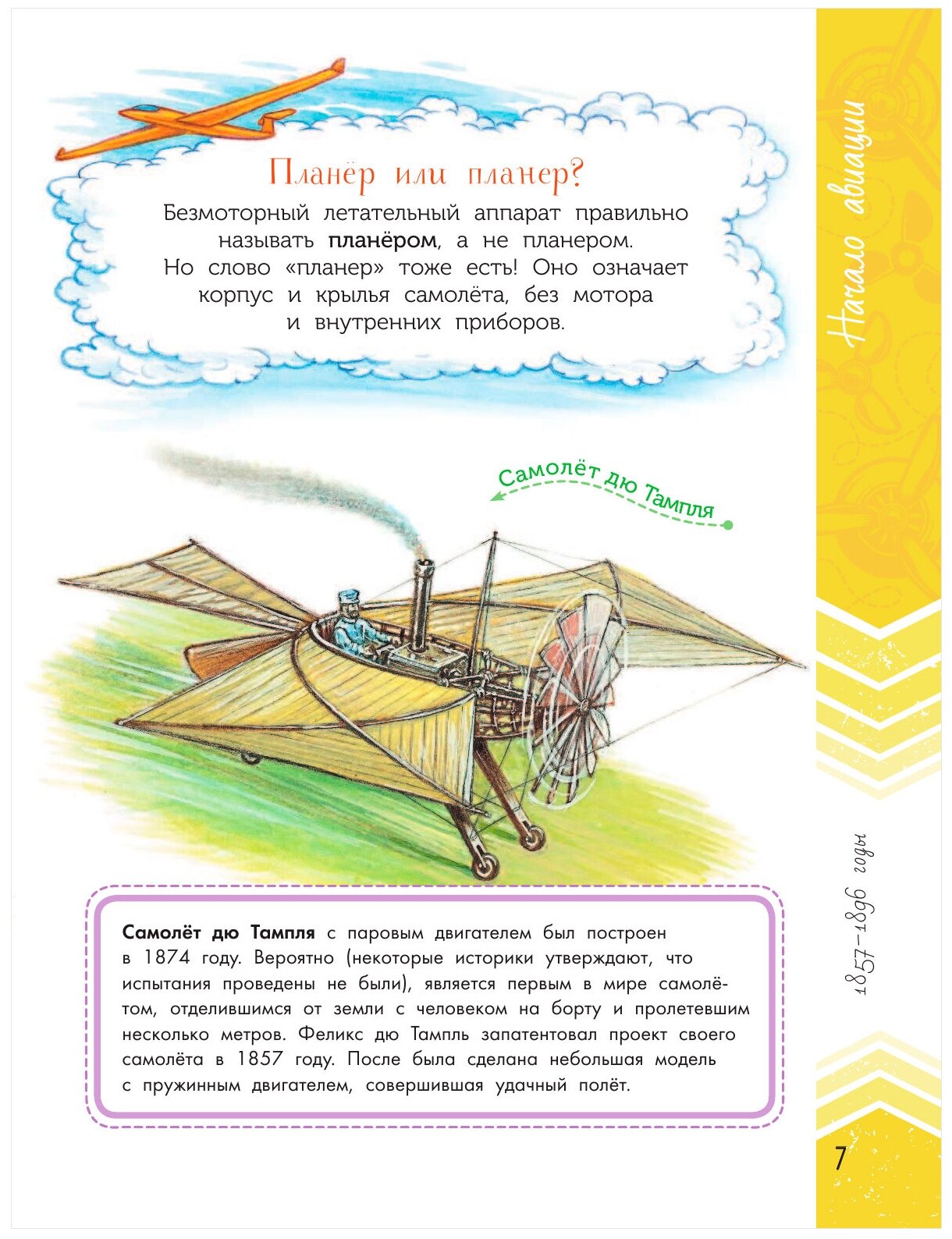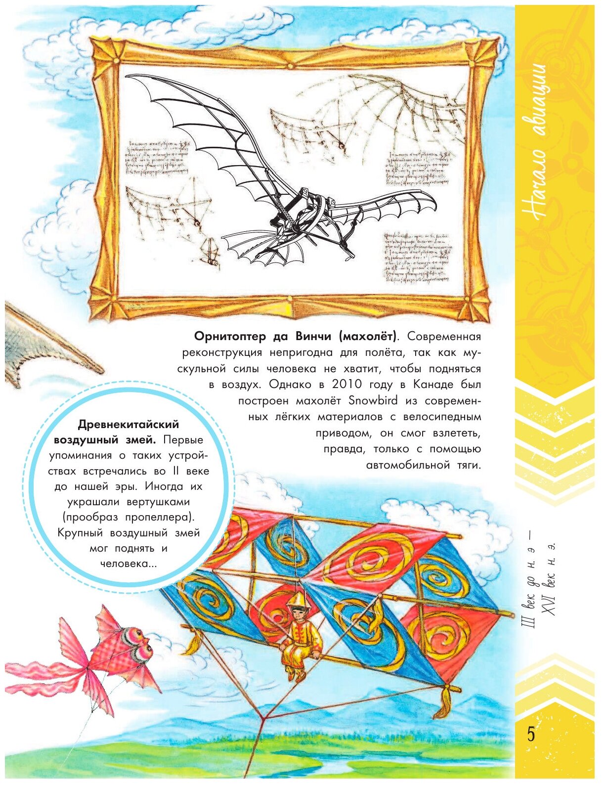 Вся история авиации и лучшие модели самолётов и вертолётов разного времени собраны в одной книге! Огромные пассажирские лайнеры и компактный реактивный ранец-крыло Ива Росси, самолёты высшего пилотажа, гидропланы, беспилотники, сверхзвуковые истребители, воздушно-космические самолёты и даже летающее такси предстанут перед читателем на страницах этой энциклопедии. Вы узнаете, что такое элероны и кто их изобрёл, зачем вертолётам два винта, какие самолёты участвовали в сражениях Второй мировой войны, кто совершил первый перелёт через океан, для чего нужны самолёты-амфибии. Текст сопровождается яркими, красочными иллюстрациями.
