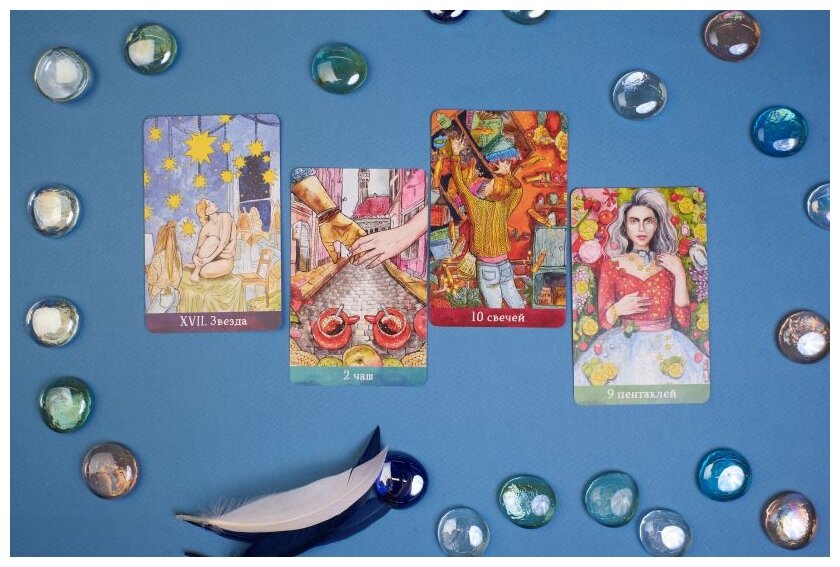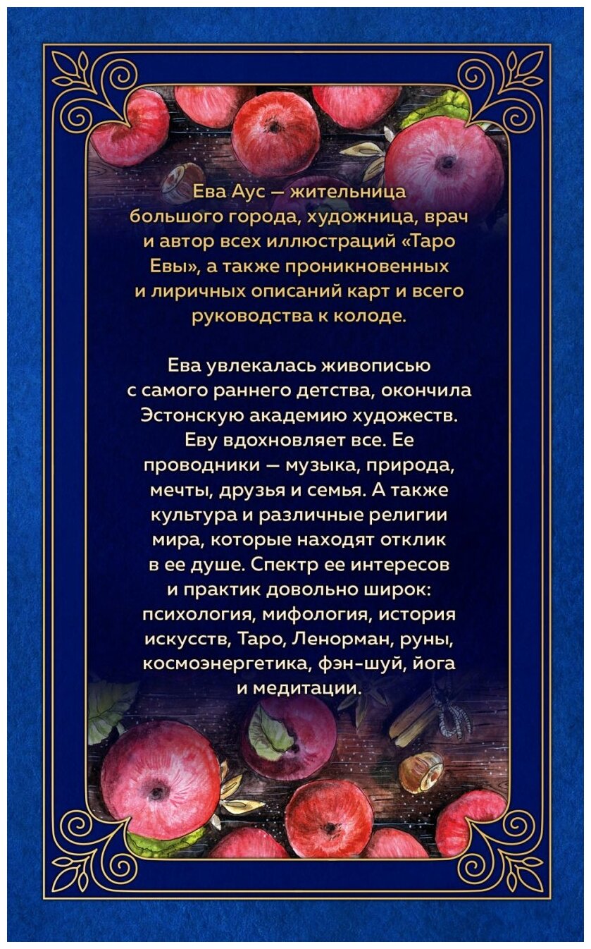 - Колоду из 79 карт: 22 Старших аркана, 56 Младших арканов и авторская карта Евы.