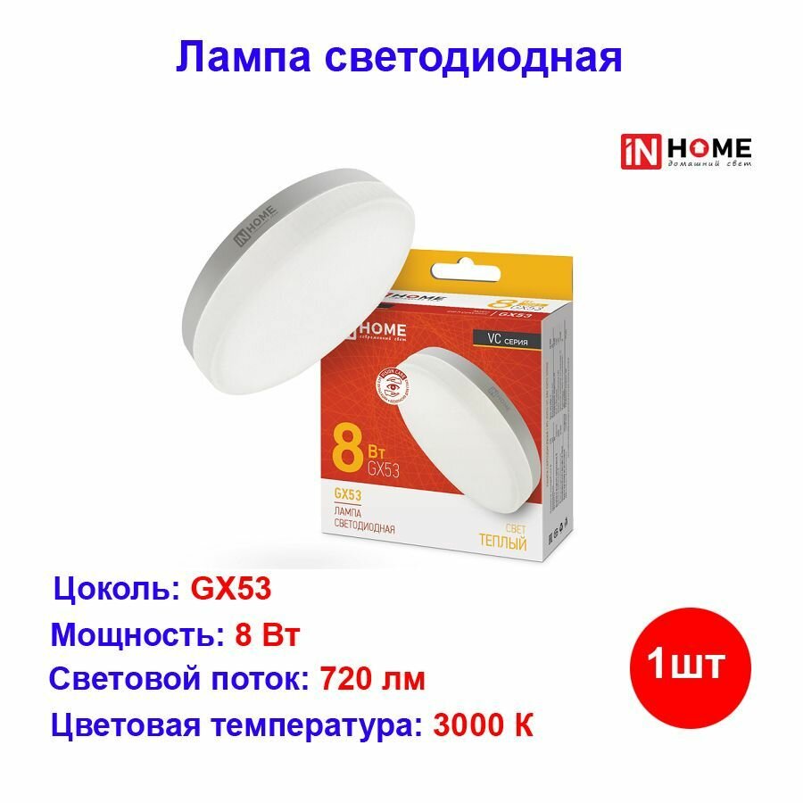 Лампа INHOME LED-GX53-VC 8Вт 720lm 30000ч 3000К GX53 10 шт.