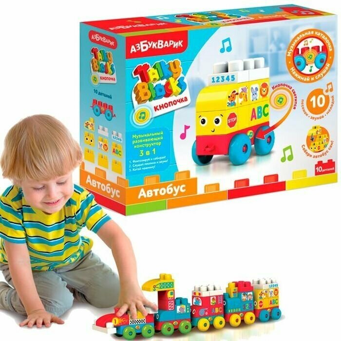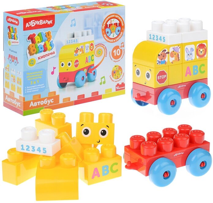 Конструктор Азбукварик Talky Blocks кнопочка Автобус