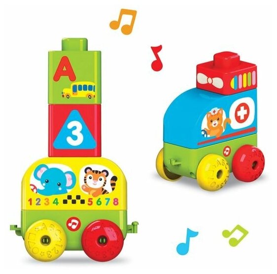Talky Blocks – это новая серия развивающих конструкторов для малышей. Собери из деталей игрушку, установи ее на музыкальную каталочку – игрушка оживет!