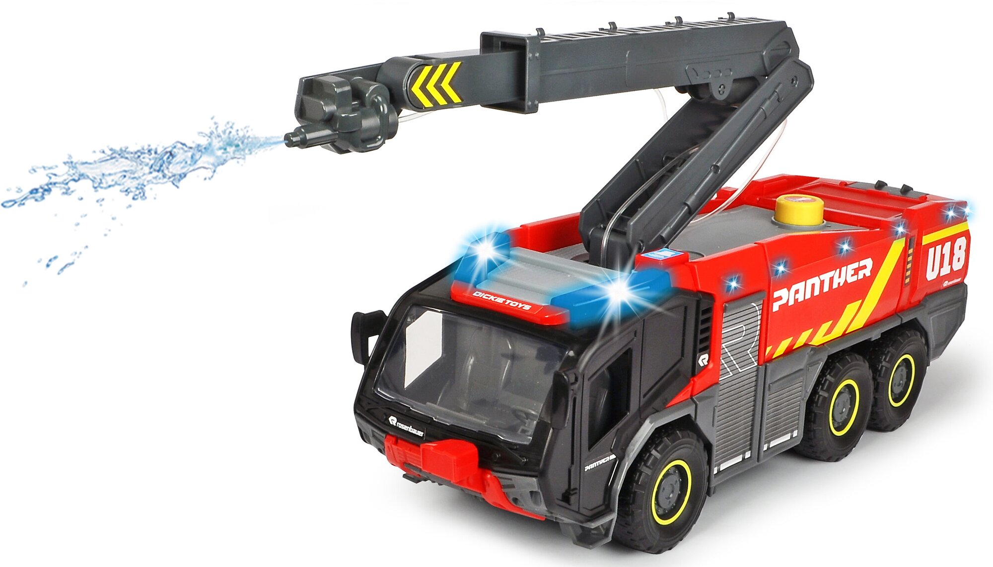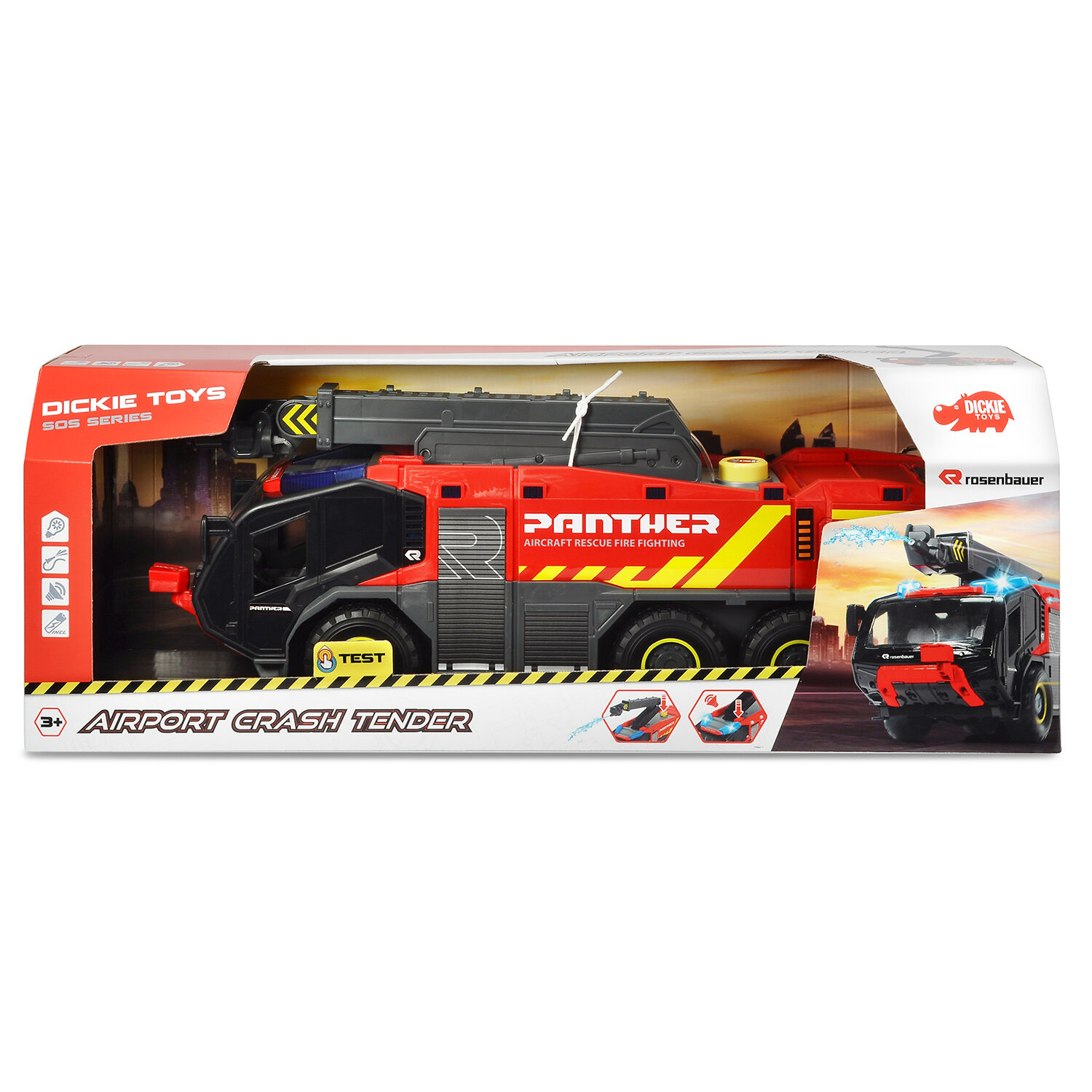 Пожар в аэропорту может быстро выйти из-под контроля. Хорошо, что пожарная команда аэропорта находится на месте. Автомобиль оборудован детализированной кабиной водителя, дополнительным пространством для хранения, светом и звуком, а также емкостью для воды. Функция разбрызгивания воды на выдвижном рычаге очень проста в использовании вручную и является настоящей особенностью для детей. Удивите своих детей этой необыкновенной пожарной машиной Dickie Toys.