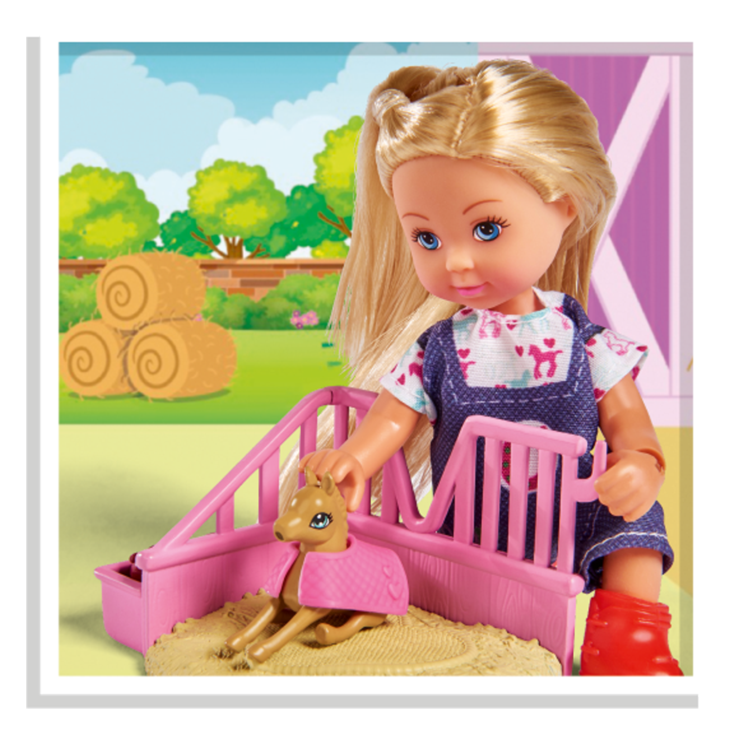 | Комплектация | кукла Еви, лошадка, жеребенок, попона, аксессуары |