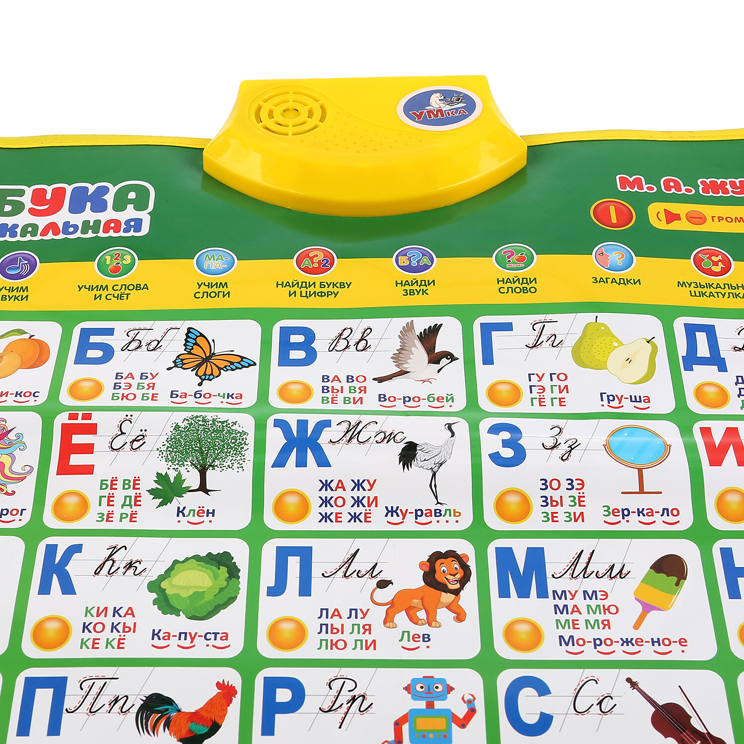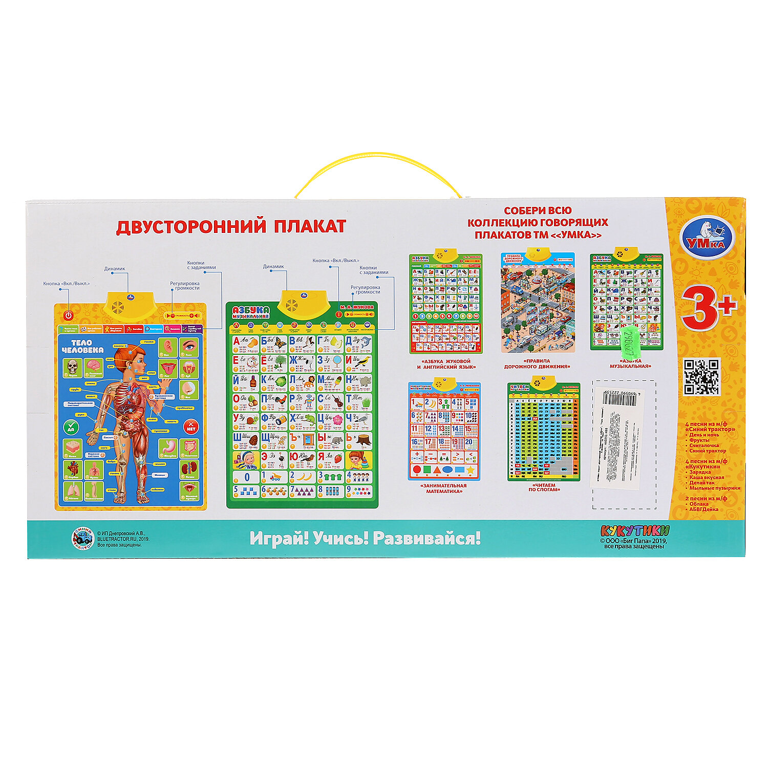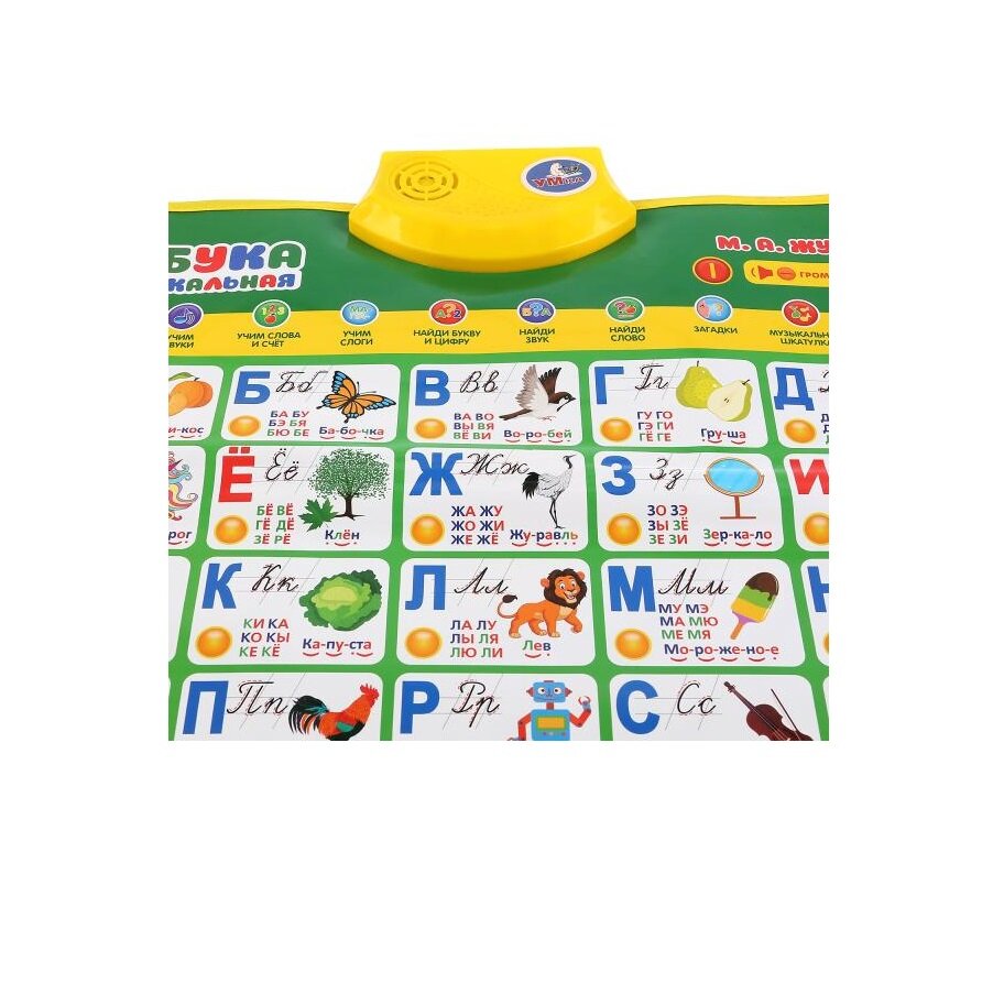 Полезная база для обучения ребёнка в виде обучающего плаката. Преподнесённую в визуальном и звуковом форматах информацию ребёнку будет проще усвоить и запомнить. Малыш с удовольствием будет нажимать на разнообразные кнопки и в лёгкой игровой форме знакомиться с буквами, цифрами и особенностями строения человеческого тела.