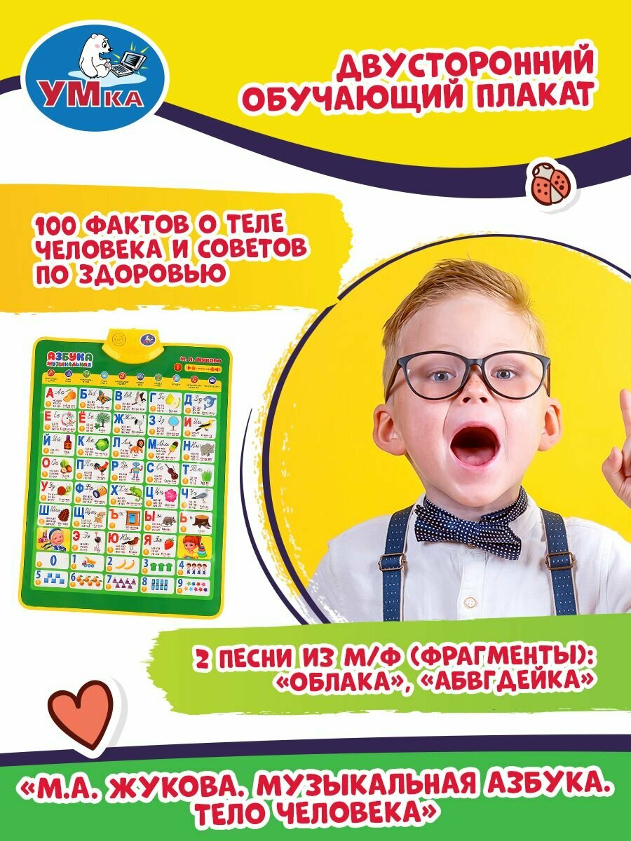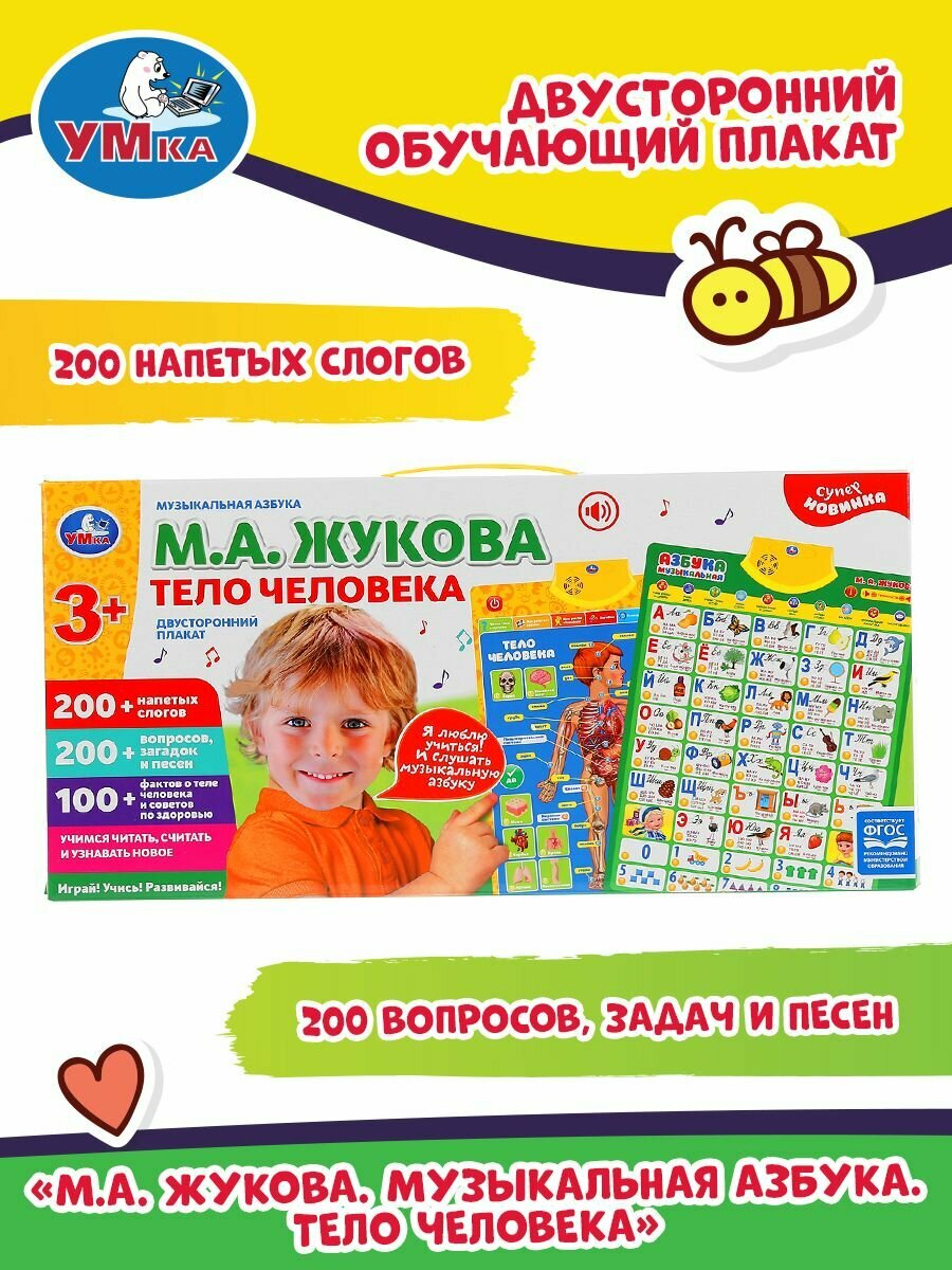 Двусторонний обучающий плакат М.А. Жукова. Музыкальная азбука. Тело человека ТМ УМка порадует вашего ребенка красочным дизайном и своим функционалом.