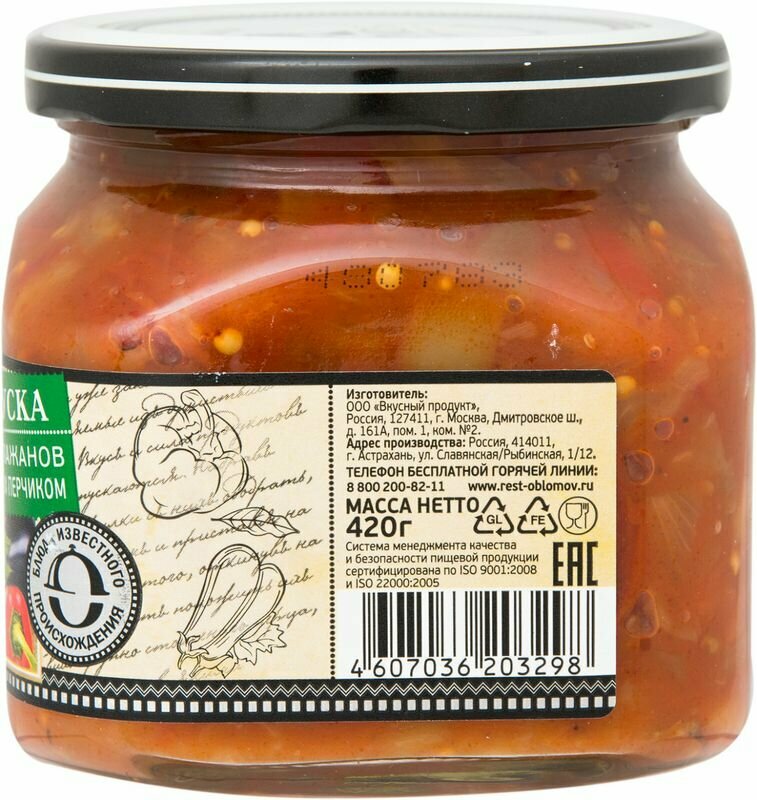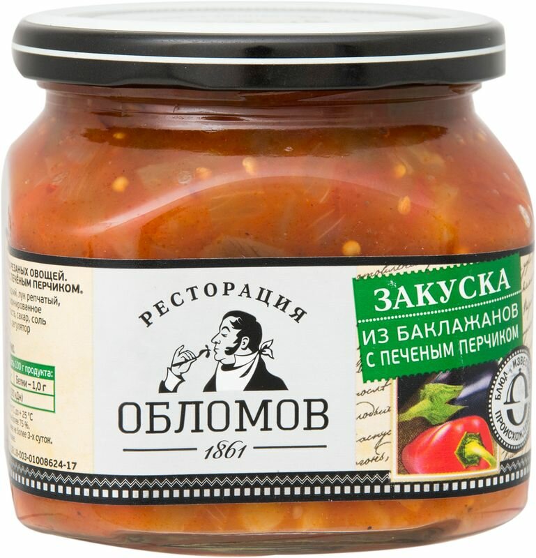 Сервис сравнения цен СкидкаГИД предлагает сравнить цены на товар «Закуска "Ресторация Обломов" из баклажанов с печеным перчиком 420гр Пиканта (AST01794)»