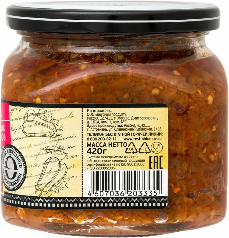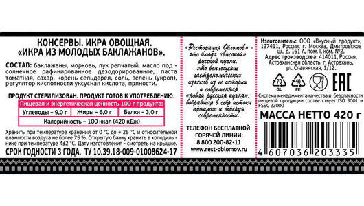 Икра "Ресторация Обломов" из молодых баклажанов 420гр Пиканта (AST01799)