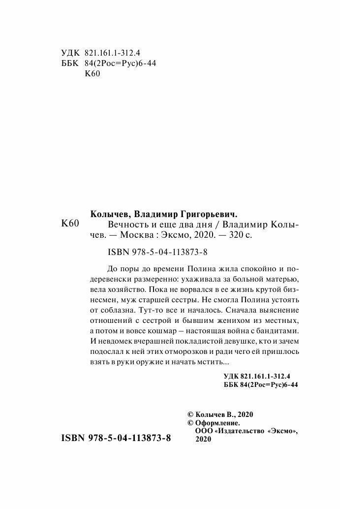 Книга: Вечность и еще два дня (Колычев Владимир Григорьевич); Эксмо, Редакция 1, 2020