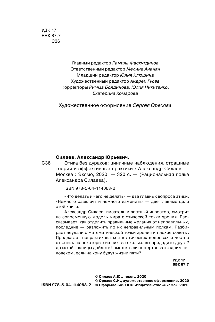 Этика без дураков. Циничные наблюдения страшные теории и эффективные практики (Силаев Александр); ООО "Издательство "Эксмо", 2020