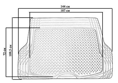 Коврик багажника SKYWAY Полиуретановый Черный (109,5х144см) Большой - защита багажника от загрязнений и влаги. Коврик из эластичного и прочного полиуретана удерживает пыль, грязь и жидкие вещества, не позволяя проникать им в салон. Универсальный размер позволяет использовать ковер для большинства автомобилей.Особенности:Данная модель может корректироваться (вырезаться) по форме и размеру за счет насечек, нанесенных по краям ковра.Коврик сохраняет эластичность даже при низких и высоких температурах (от -50°С до +50°С).Обладает повышенной устойчивостью к износу и агрессивным средам, таким как антигололёдные реагенты, масло и топливо.Усовершенствованная конструкция изделия обеспечивает плотное прилегание и надёжную фиксацию коврика на полу автомобиля.