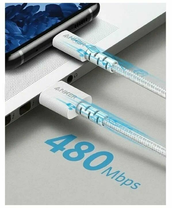 - Кабель Anker PowerLine Select+ USB-C to USB-C 0.9 м, цвет Белый / Хороший кабель /